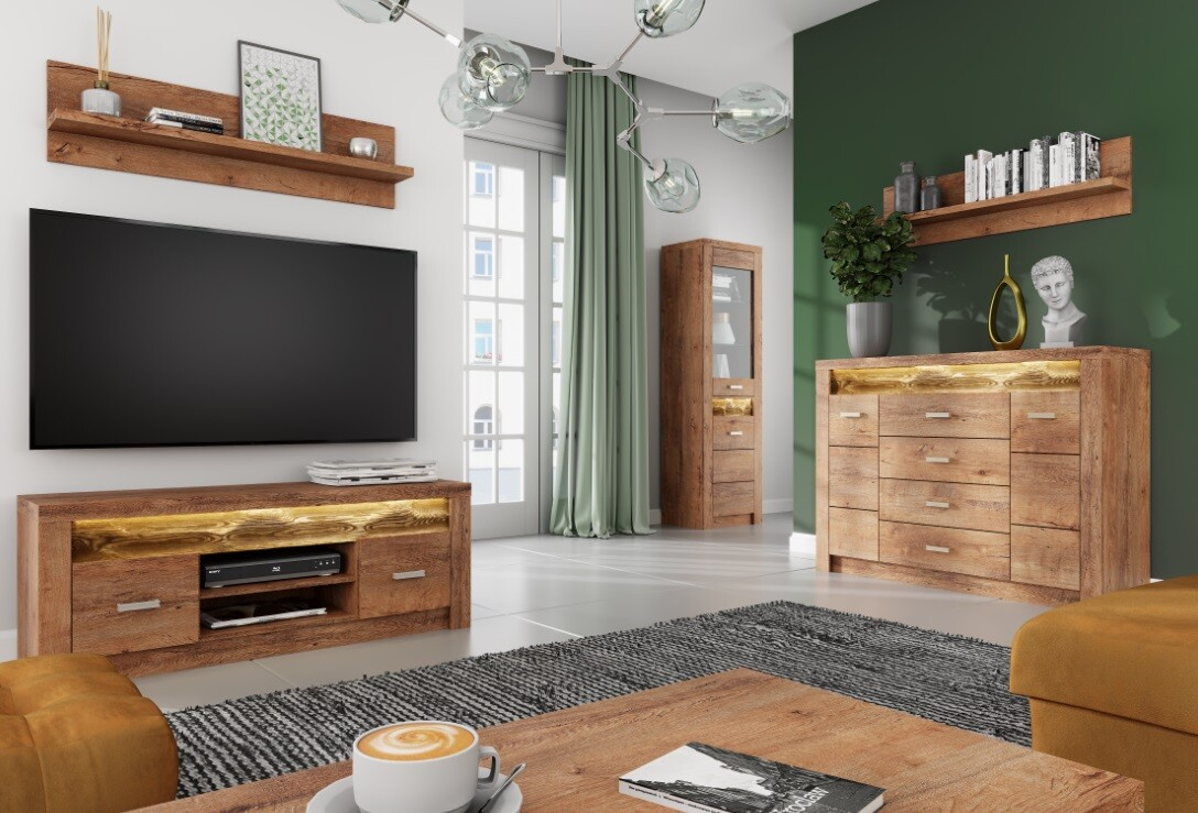 Az Indianapolis kollekcióból származó függő polc, amely illik a szobába és kiegészíti azt. Üveges ajtókkal és polcokkal rendelkezik, amelyek csodálatossá teszik. A polcok fém fogantyúkkal rendelkeznek, és lehetőség van LED világítás beépítésére. A teljes üvegezett homlokzatok helyett használhatók táblákból készült homlokzatok. Három színben kapható.