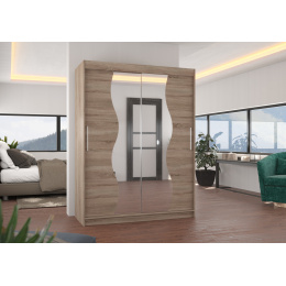 A RENZO tolóajtós és tükrös ruhásszekrény ideális módja a tér rendezésének. A bútor tágas polcokkal és egy rúddal van felszerelve, amelyre felakaszthatja a ruhákat, öltönyöket, felsőruházatot vagy ingeket. Az elülső oldalra egy tükör volt rögzítve, amely optikailag megnöveli a teret. Annak köszönhetően, hogy a szekrény tolóajtós, nem kell további helyet biztosítani az ajtók kinyitásához, ami ideális megoldássá teszi egy kis szoba vagy keskeny előszoba számára.