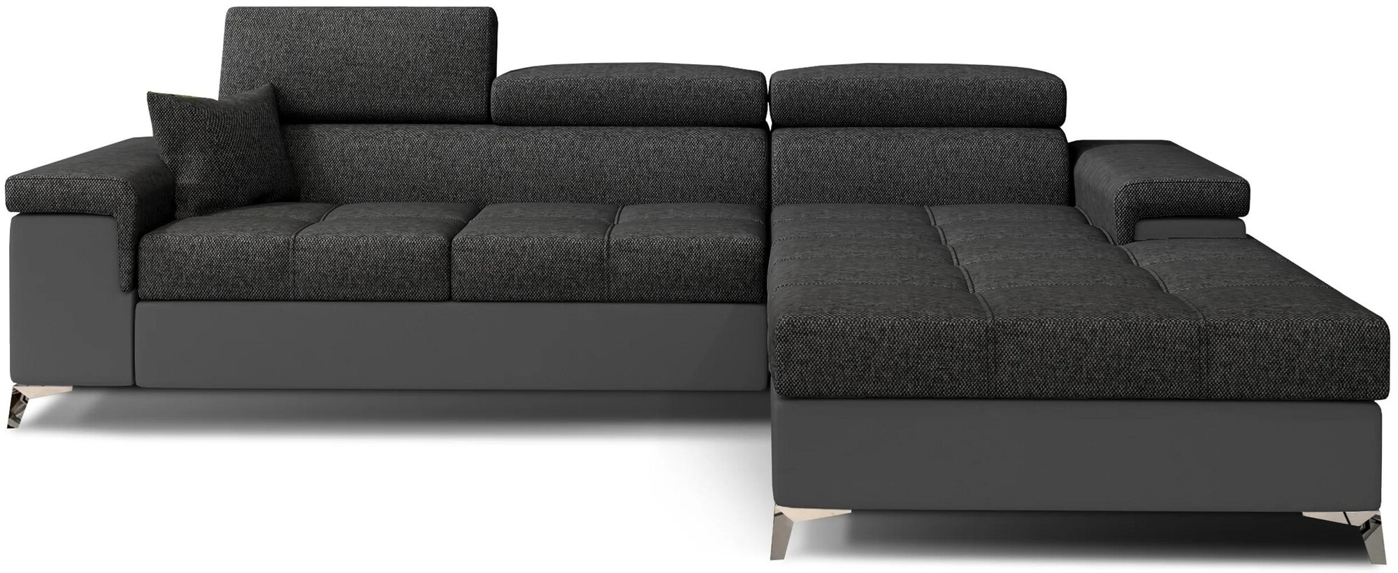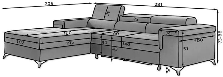 Ricardo is a simple and stylish corner sofa with thoughtful embellishments in the modern classic style, as the classic body is complemented by many, modern finishes of individual elements. The spacious corner sofa, measuring 280 x 205 x 90 cm, will be perfect as a piece of furniture for daytime relaxation, but it can also serve as a place to sleep, measuring 125 x 210 cm. This model is equipped with a folding sleeping function, based on the simple and intuitive to use dolphin system. Besides, it also has a spacious bedding container located in the ottoman. The effect of softness and springiness is due to the use of high-quality foam in it and the use of corrugated springs. The comfortable seat, wide armrests, adjustable headrests and chrome legs deserve an additional distinction in our furniture. In addition, this model, is available in the full range of Eltap colors. We guarantee that from such a corner sofa as Ricardo - you will be 101% satisfied.