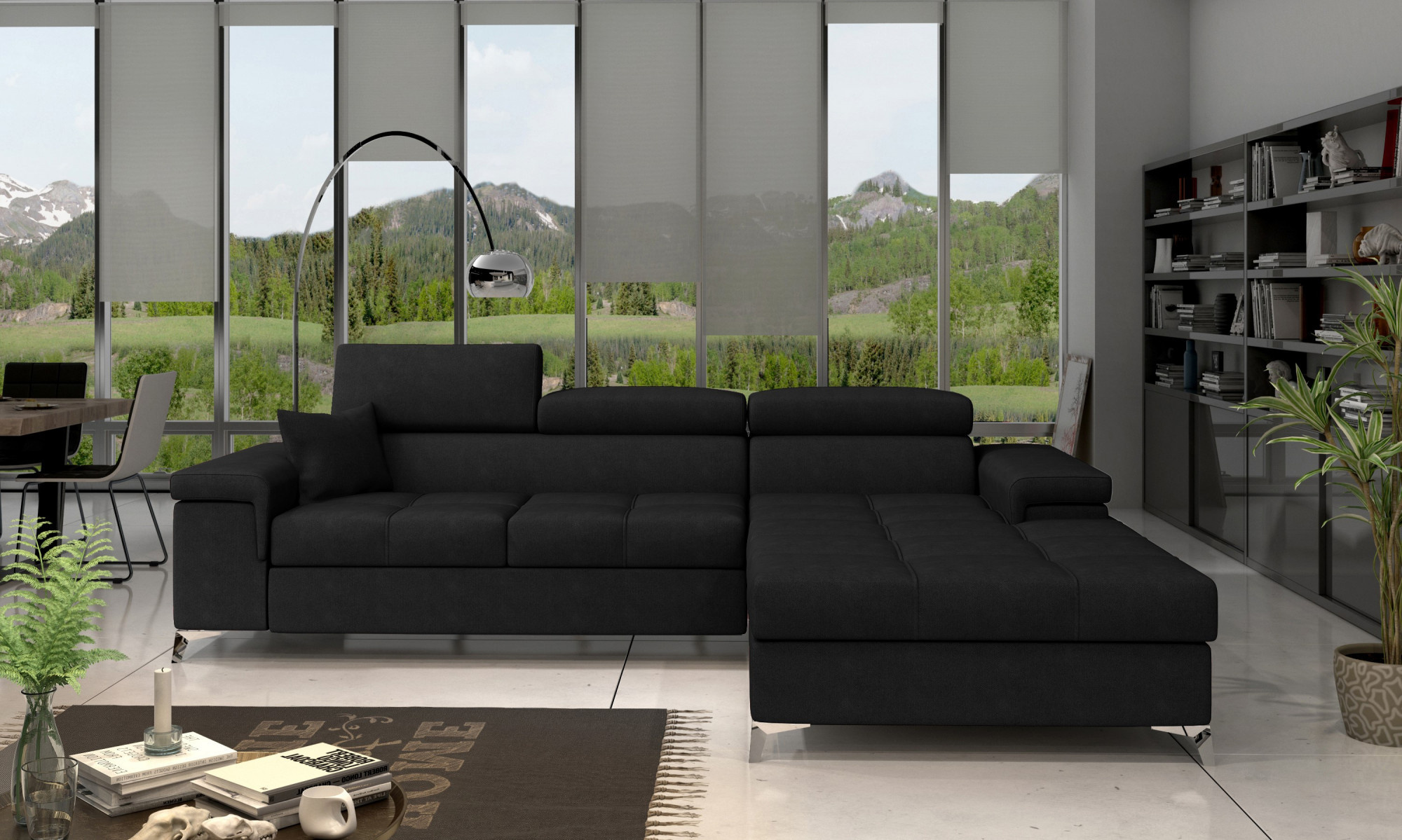 Ricardo is a simple and stylish corner unit with thoughtful decorations in the modern-classic style, because the classic shape is complemented by many modern finishes of individual components. This spacious corner sofa bed, with dimensions of 281 x 205 x 88 cm, will be perfect as a piece of furniture for daytime rest, but can also be used as a place to sleep with the bed dimensions of 124 x 216 cm. This model is equipped with unfolding of the sleeping function, based on a simple and intuitive dolphin system. In addition, it also has a large storage compartment for bedding located in the ottoman. The effect of softness and elasticity is caused by the use of high-quality foam and the use of wave springs. An additional distinguishing feature of our furniture is: a comfortable seat, wide armrests, adjustable headrests and chrome legs. In addition, this model is available in the full Eltap’s colour range. We guarantee that you will be 101% satisfied with such a corner unit as Ricardo.