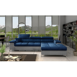Ricardo is a simple and stylish corner sofa with thoughtful embellishments in the modern classic style, as the classic body is complemented by many, modern finishes of individual elements. The spacious corner sofa, measuring 280 x 205 x 90 cm, will be perfect as a piece of furniture for daytime relaxation, but it can also serve as a place to sleep, measuring 125 x 210 cm. This model is equipped with a folding sleeping function, based on the simple and intuitive to use dolphin system. Besides, it also has a spacious bedding container located in the ottoman. The effect of softness and springiness is due to the use of high-quality foam in it and the use of corrugated springs. The comfortable seat, wide armrests, adjustable headrests and chrome legs deserve an additional distinction in our furniture. In addition, this model, is available in the full range of Eltap colors. We guarantee that from such a corner sofa as Ricardo - you will be 101% satisfied.