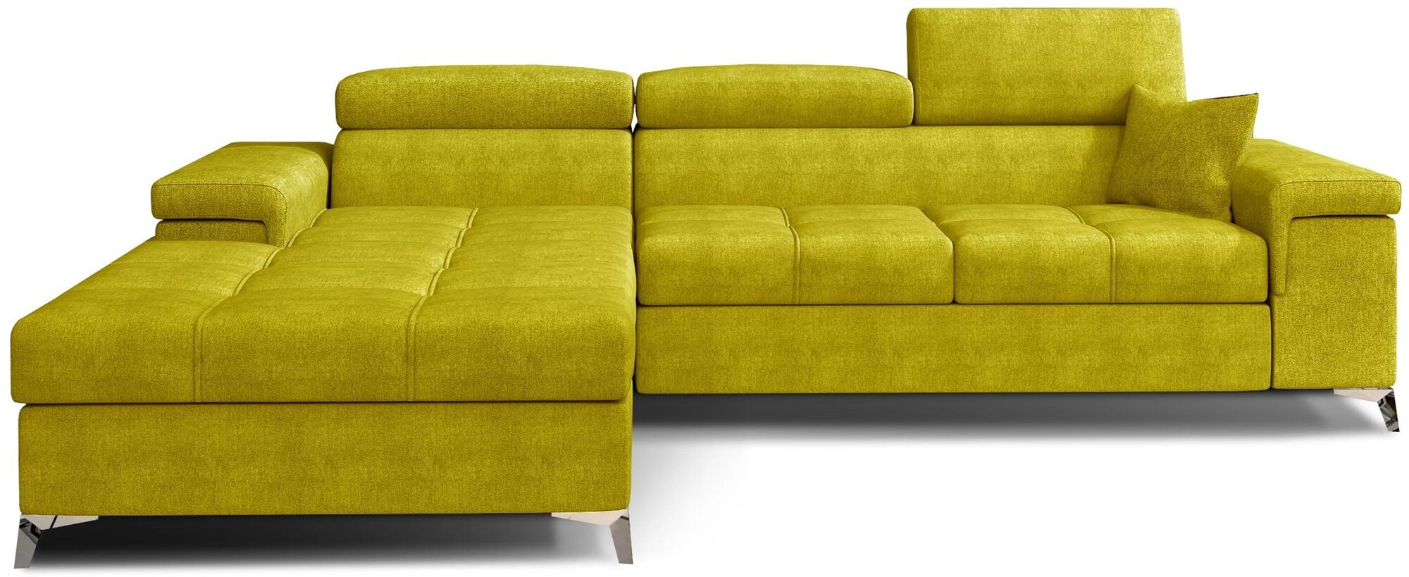 Ricardo is a simple and stylish corner sofa with thoughtful embellishments in the modern classic style, as the classic body is complemented by many, modern finishes of individual elements. The spacious corner sofa, measuring 280 x 205 x 90 cm, will be perfect as a piece of furniture for daytime relaxation, but it can also serve as a place to sleep, measuring 125 x 210 cm. This model is equipped with a folding sleeping function, based on the simple and intuitive to use dolphin system. Besides, it also has a spacious bedding container located in the ottoman. The effect of softness and springiness is due to the use of high-quality foam in it and the use of corrugated springs. The comfortable seat, wide armrests, adjustable headrests and chrome legs deserve an additional distinction in our furniture. In addition, this model, is available in the full range of Eltap colors. We guarantee that from such a corner sofa as Ricardo - you will be 101% satisfied.