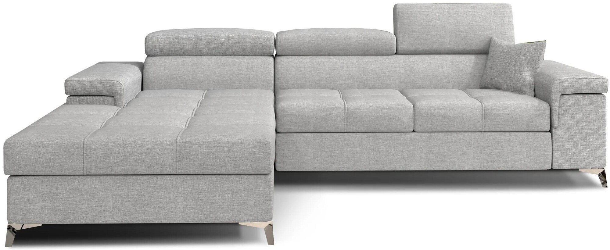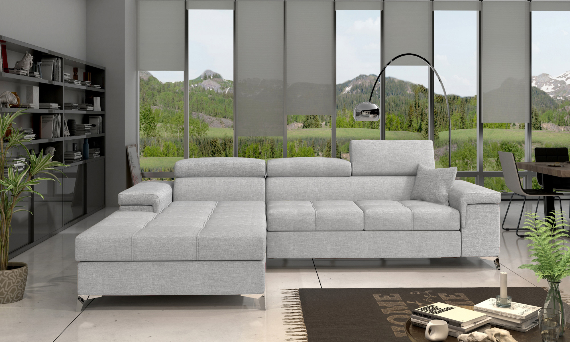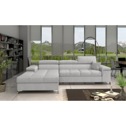 Ricardo is a simple and stylish corner sofa with thoughtful embellishments in the modern classic style, as the classic body is complemented by many, modern finishes of individual elements. The spacious corner sofa, measuring 280 x 205 x 90 cm, will be perfect as a piece of furniture for daytime relaxation, but it can also serve as a place to sleep, measuring 125 x 210 cm. This model is equipped with a folding sleeping function, based on the simple and intuitive to use dolphin system. Besides, it also has a spacious bedding container located in the ottoman. The effect of softness and springiness is due to the use of high-quality foam in it and the use of corrugated springs. The comfortable seat, wide armrests, adjustable headrests and chrome legs deserve an additional distinction in our furniture. In addition, this model, is available in the full range of Eltap colors. We guarantee that from such a corner sofa as Ricardo - you will be 101% satisfied.
