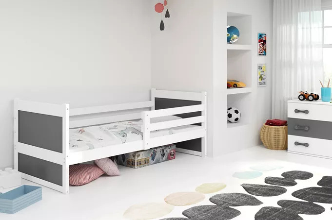 RICO PARTEROWE RAMA BIAŁY WYPEŁNIENIA GRAFIT BEZ SZUFLADY BEZ MATERACY 90 X 200 KPL