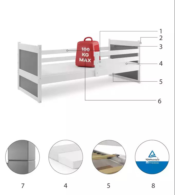 - Certyfikowane łóżko - jakość i bezpieczeństwo zgodnie z normami TUV.