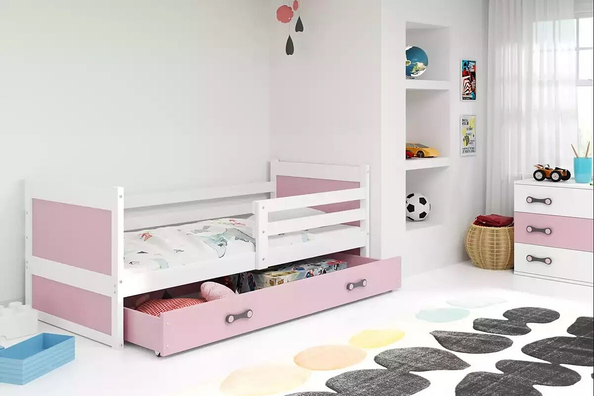 RICO PARTEROWE RAMA BIAŁY WYPEŁNIENIA RÓŻOWY SZUFLADA RÓŻOWY BEZ MATERACY 80 X 190 KPL