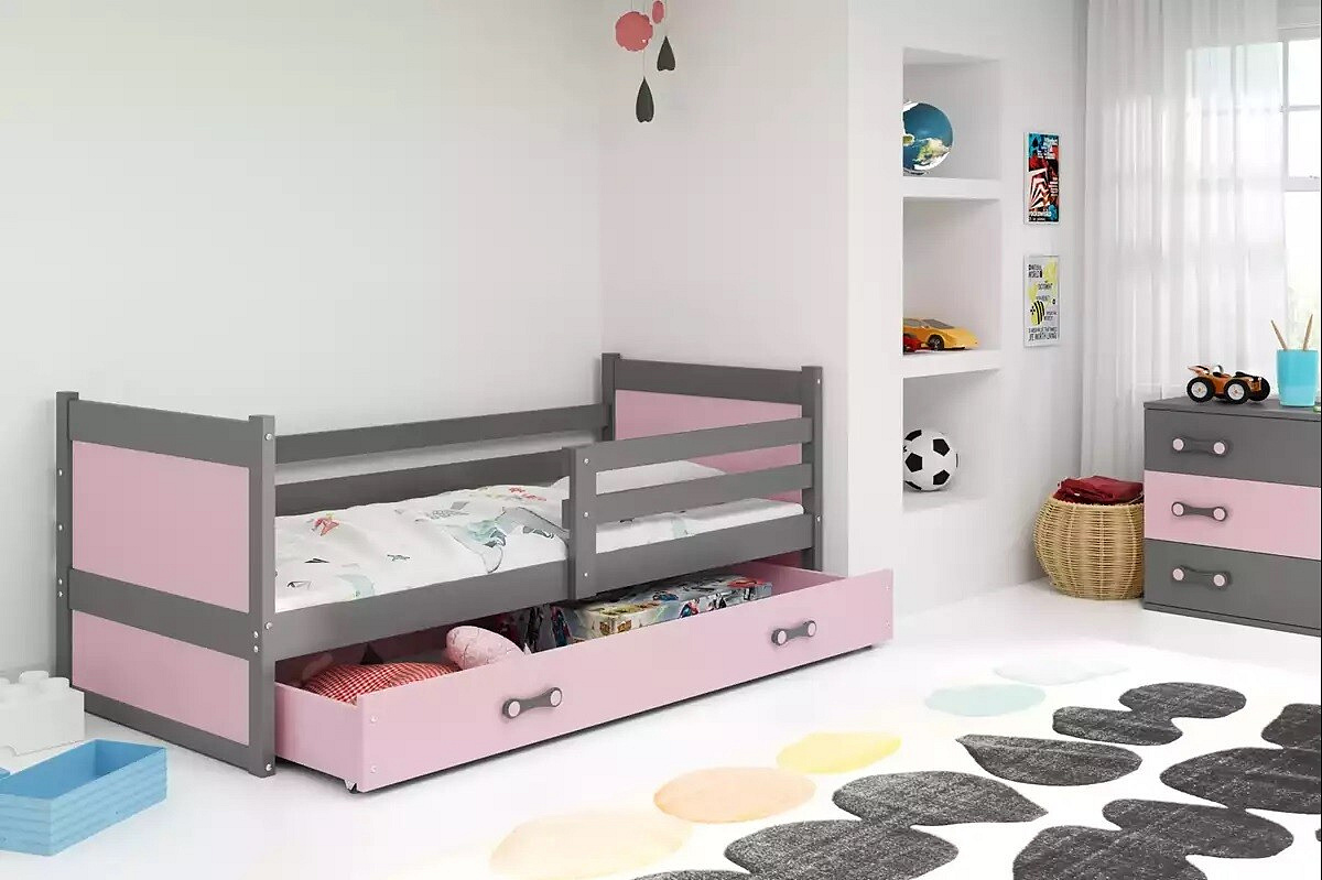 RICO PARTEROWE RAMA GRAFIT WYPEŁNIENIA RÓŻOWY SZUFLADA RÓŻOWY BEZ MATERACY 80 X 190 KPL