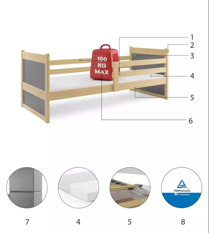 - Certyfikowane łóżko - jakość i bezpieczeństwo zgodnie z normami TUV.
