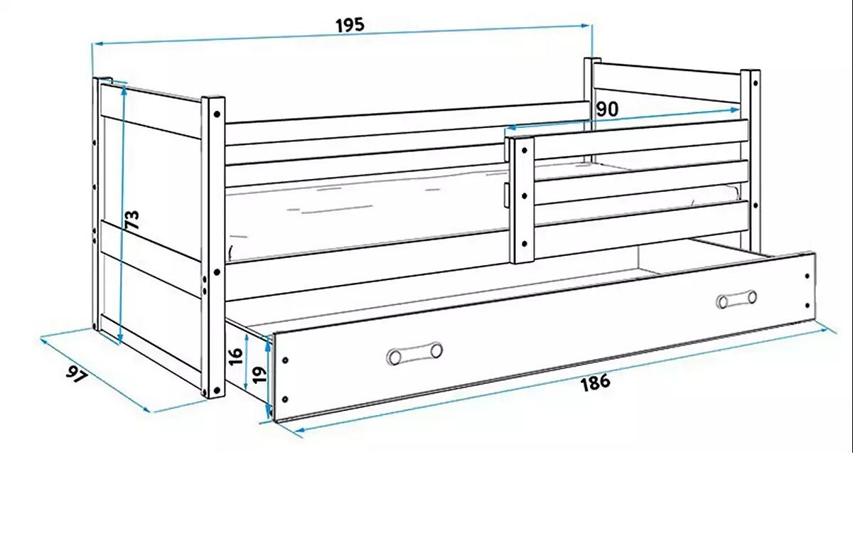- Rama łóżka - wykonana z drewna sosnowego, pomalowana lakierem wodnym.