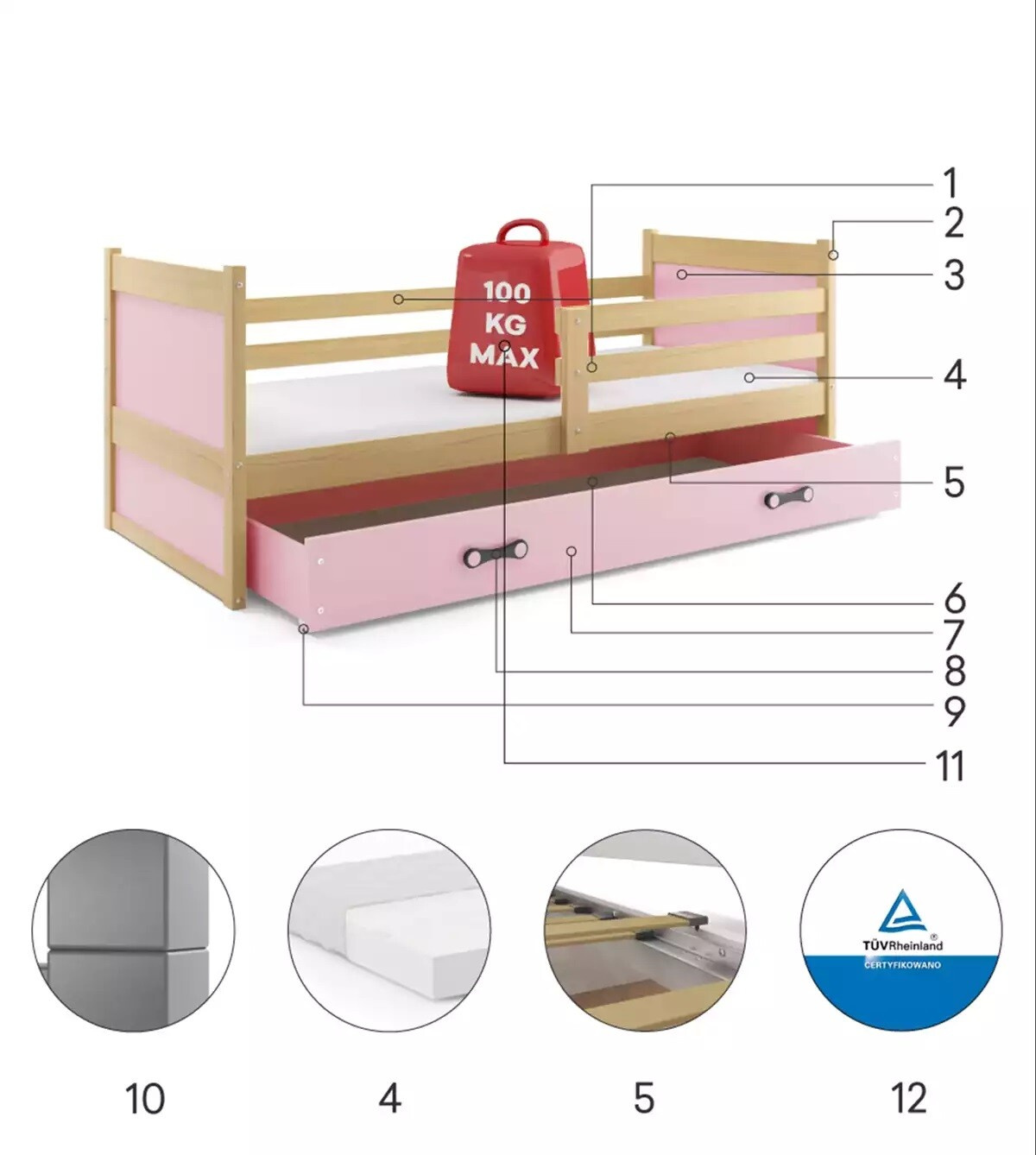 - Certyfikowane łóżko - jakość i bezpieczeństwo zgodnie z normami TUV.
