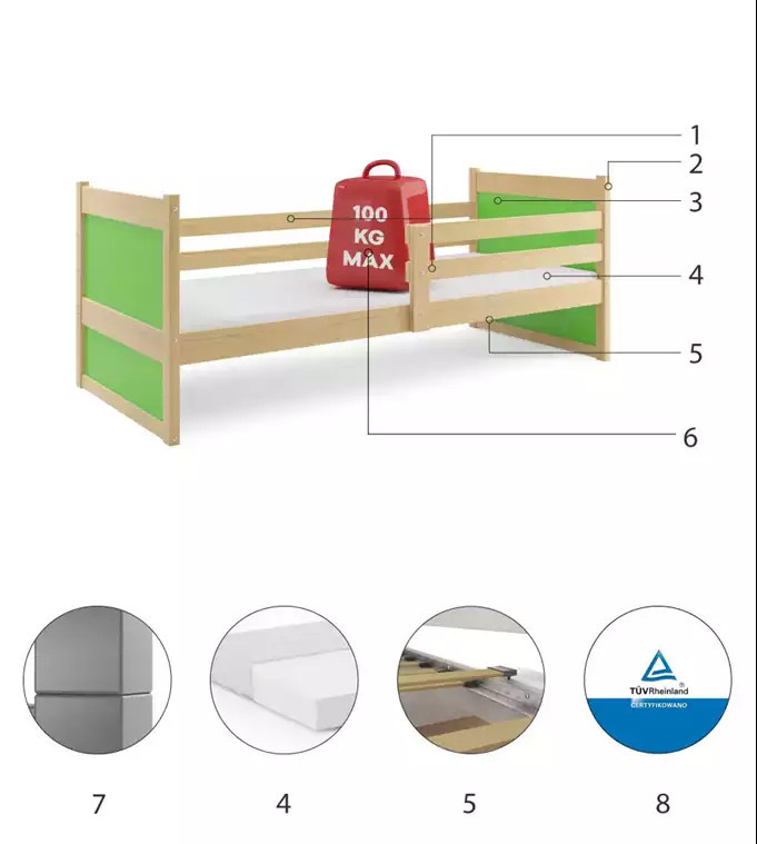 - Certyfikowane łóżko - jakość i bezpieczeństwo zgodnie z normami TUV.
