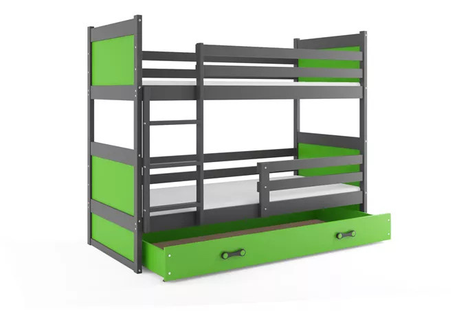 RICO PIĘTROWE RAMA GRAFIT WYPEŁNIENIA ZIELONY SZUFLADA ZIELONY BEZ MATERACY 90 X 200 KPL