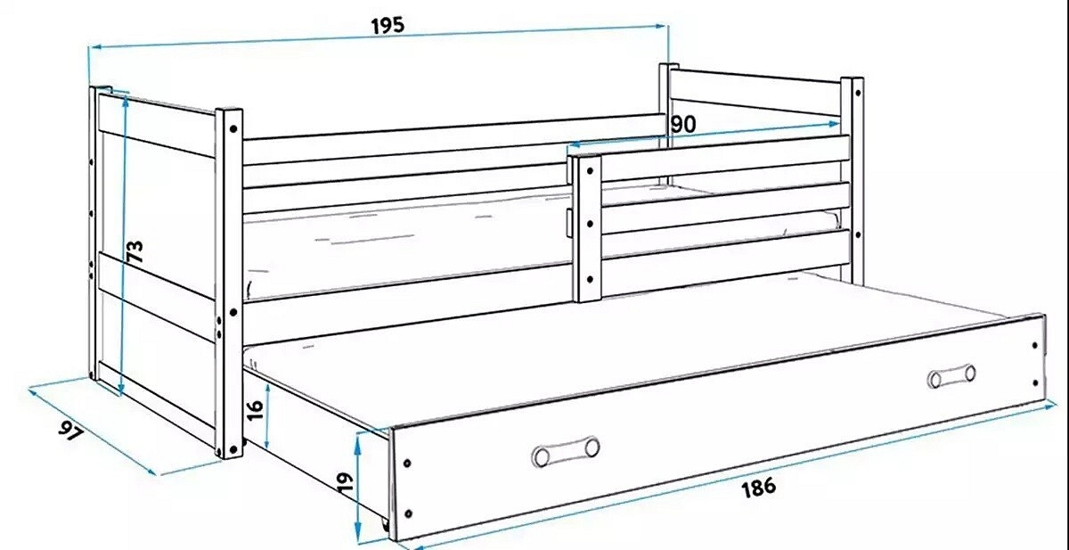 - Szuflada - wykonana z płyty wiórowej, posiada funkcję dodatkowego spania.