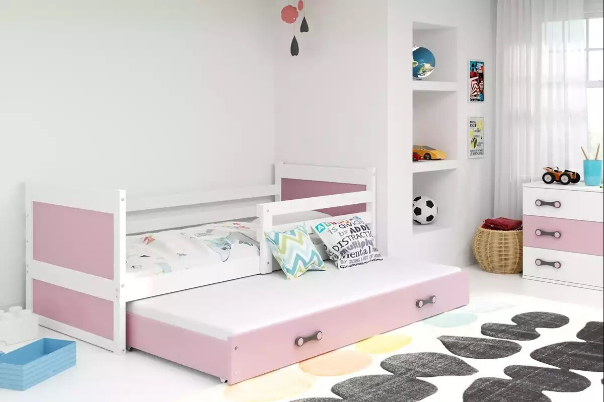 RICO PODWÓJNE RAMA BIAŁY WYPEŁNIENIA RÓŻOWY SZUFLADA RÓŻOWY 80 X 190 KPL