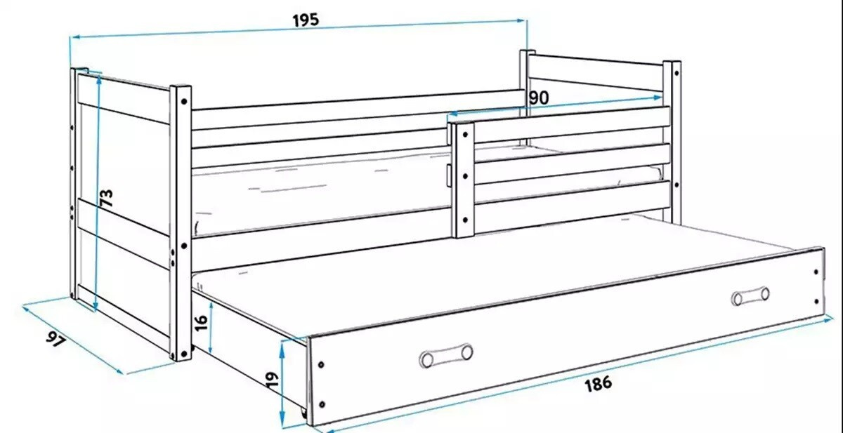 - Szuflada - wykonana z płyty wiórowej, posiada funkcję dodatkowego spania.