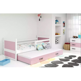 RICO PODWÓJNE RAMA BIAŁY WYPEŁNIENIA RÓŻOWY SZUFLADA RÓŻOWY BEZ MATERACY 80 X 190 KPL