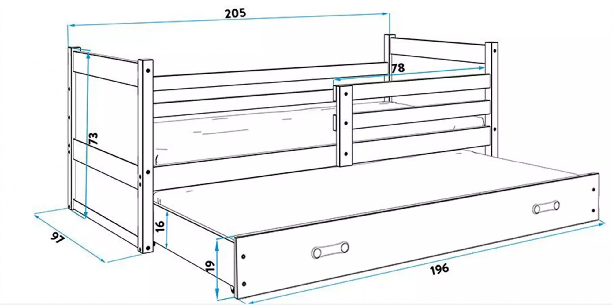 - Szuflada - wykonana z płyty wiórowej, posiada funkcję dodatkowego spania.