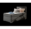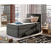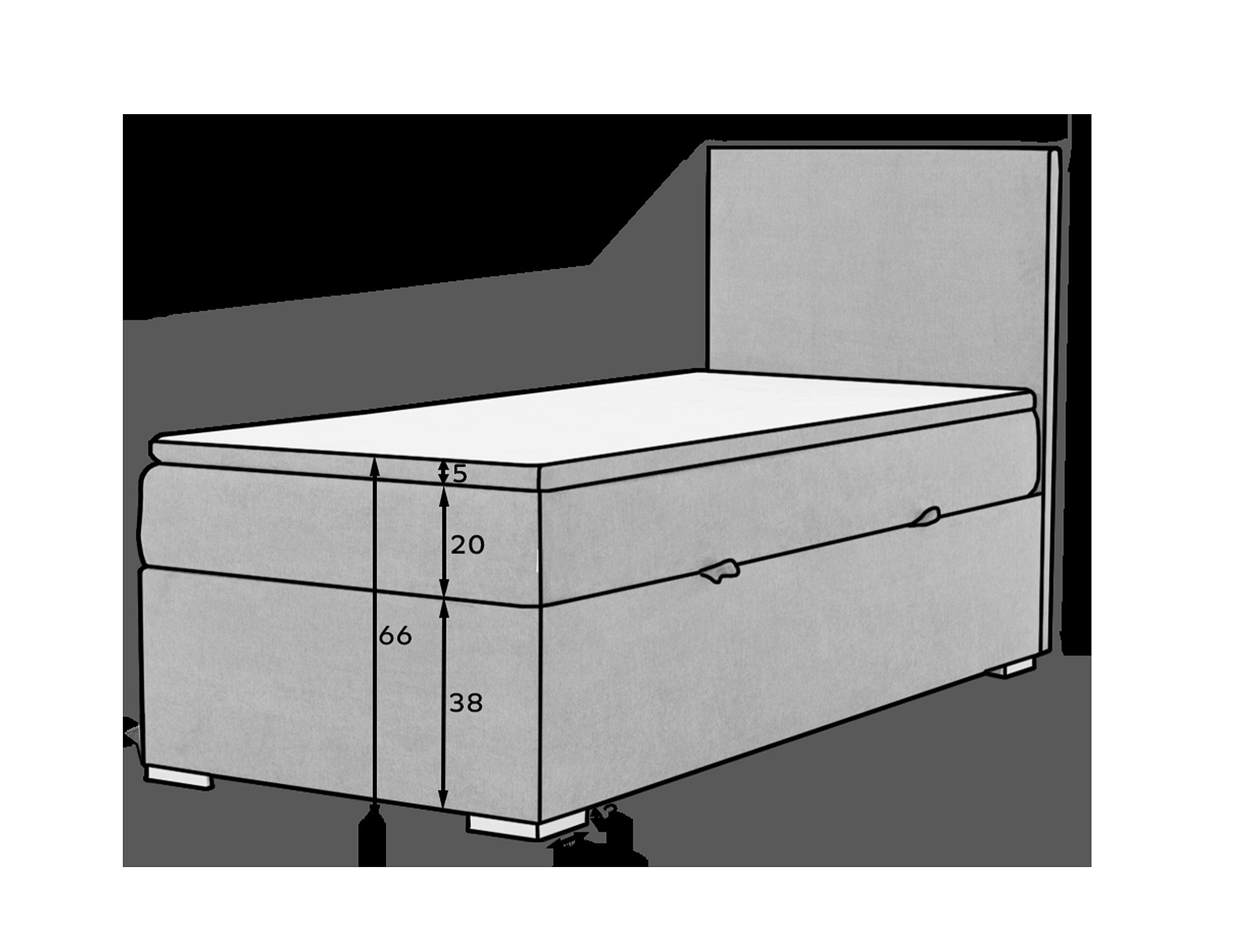 Rocco is a modest, yet tasteful, single boxspring continental bed, which is known for its functionality and maximum comfort. The furniture, with a sleeping surface of 90 x 200 cm, has been filled with a 20 cm high bonell mattress, which is reinforced with two additional layers of T25 foam, located at the top and bottom of the mattress. In addition, a topper made of T21 foam with a thickness of 4 cm also deserves a distinction. Among the distinctive features of this model we can include: a spacious bedding container divided into three parts, a high headrest, elegant metal legs, as well as the ability to choose upholstery from the available wide range of colors.