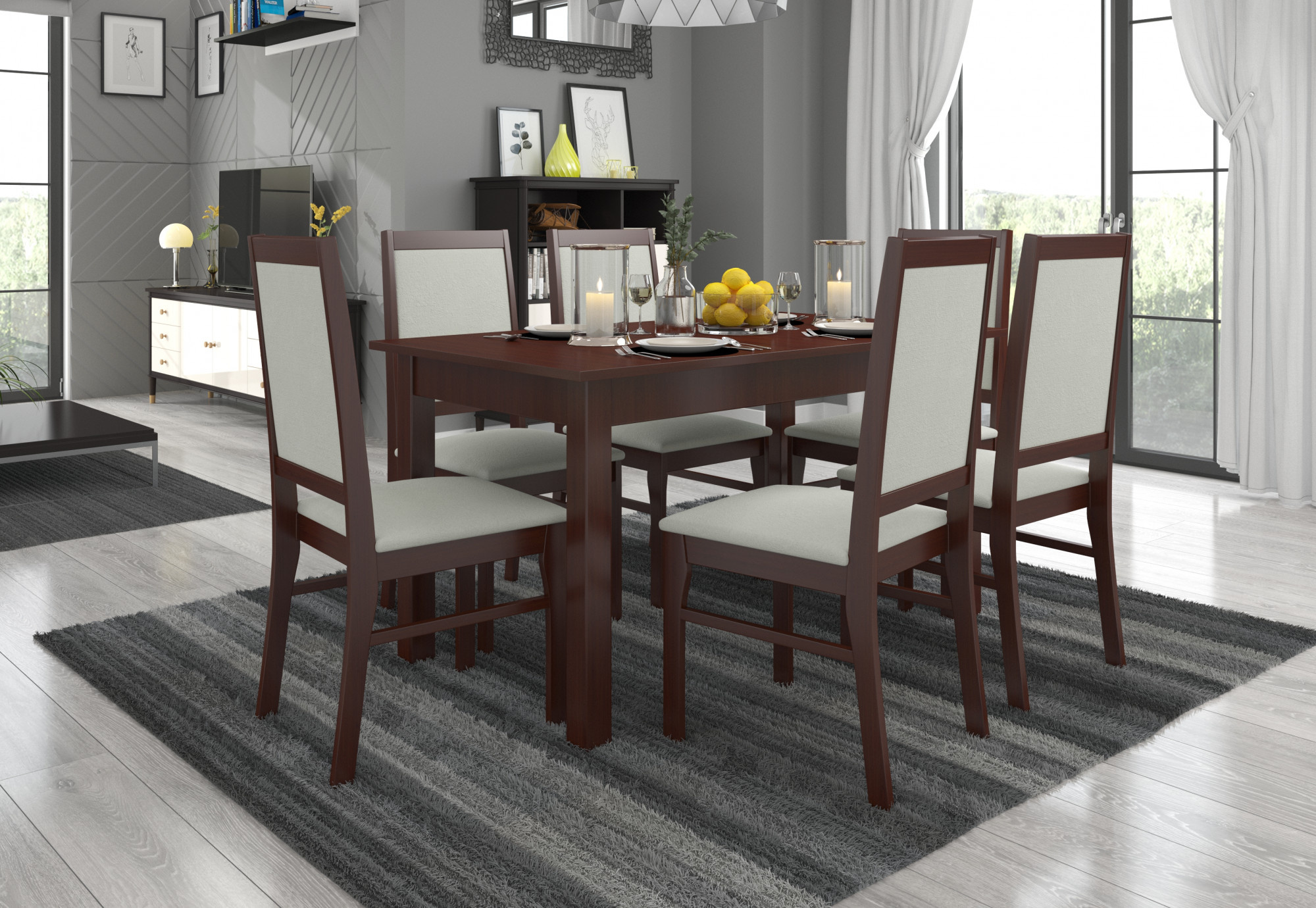 A RODOS 25 összeállítás ideális megoldás egy klasszikus étkező számára. A készlet része egy masszív asztal és hat kényelmes szék. Az egyszerű kialakítású asztal kényelmesen elfér 6 személy számára. A bútor nagyon elegáns és kényelmes. Válassza ki a színt és a szövetkollekciót, és tervezze meg álmai készletét.