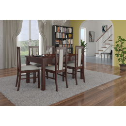 A RODOS 52 összeállítás ideális megoldás egy klasszikus étkező számára. A készlet része egy masszív asztal és hat kényelmes szék. Az egyszerű kialakítású asztal kényelmesen elfér 6 személy számára. A bútor nagyon elegáns és kényelmes. Válassza ki a színt és a szövetkollekciót, és tervezze meg álmai készletét.