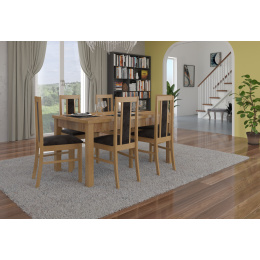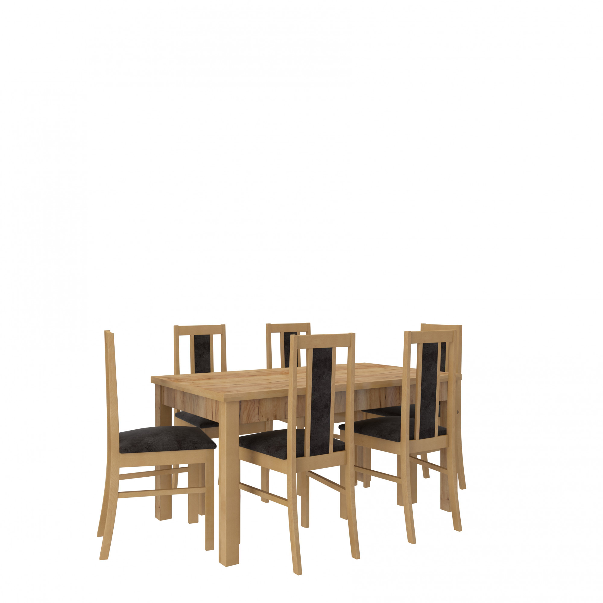 A RODOS 52 összeállítás ideális megoldás egy klasszikus étkező számára. A készlet része egy masszív asztal és hat kényelmes szék. Az egyszerű kialakítású asztal kényelmesen elfér 6 személy számára. A bútor nagyon elegáns és kényelmes. Válassza ki a színt és a szövetkollekciót, és tervezze meg álmai készletét.