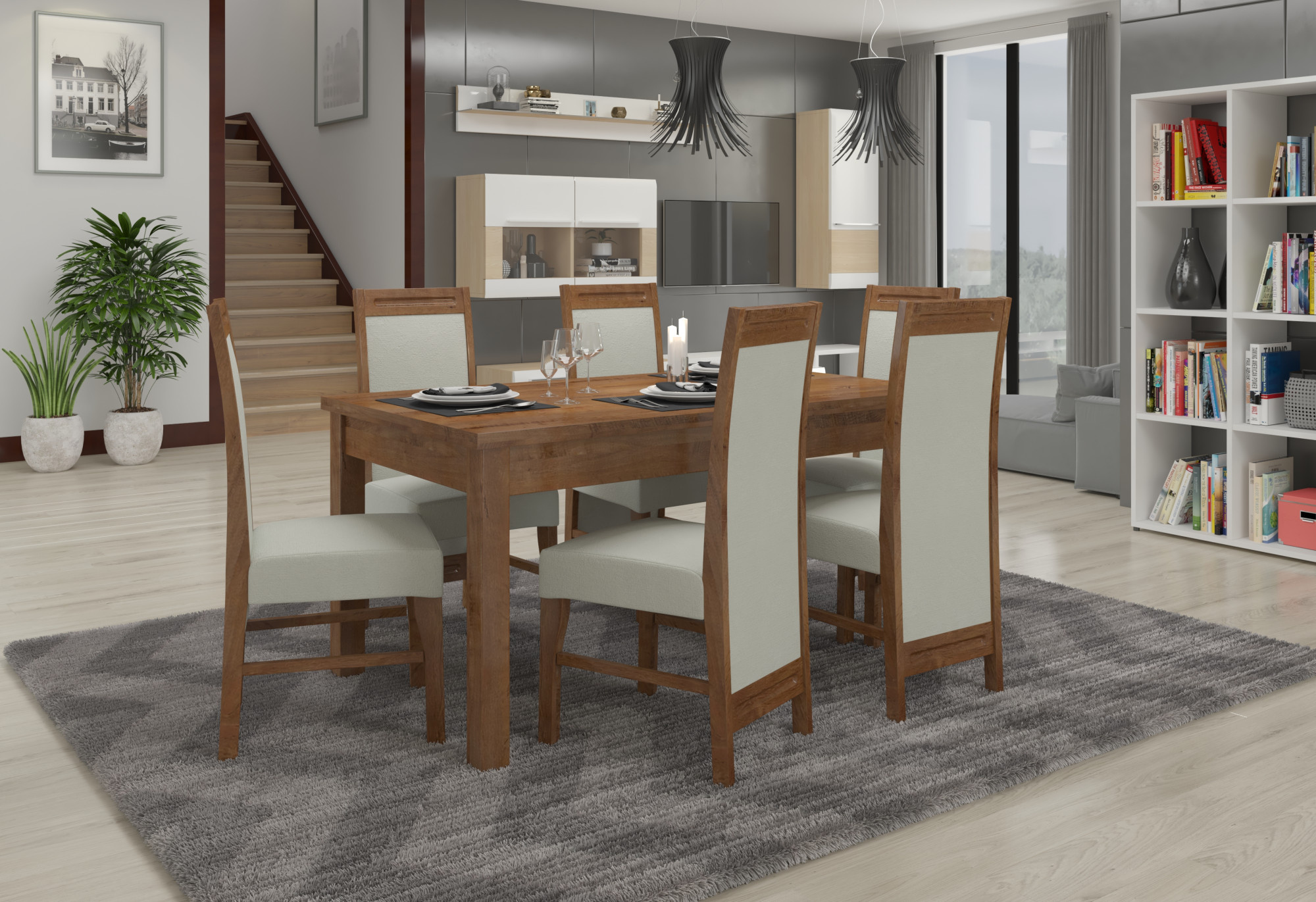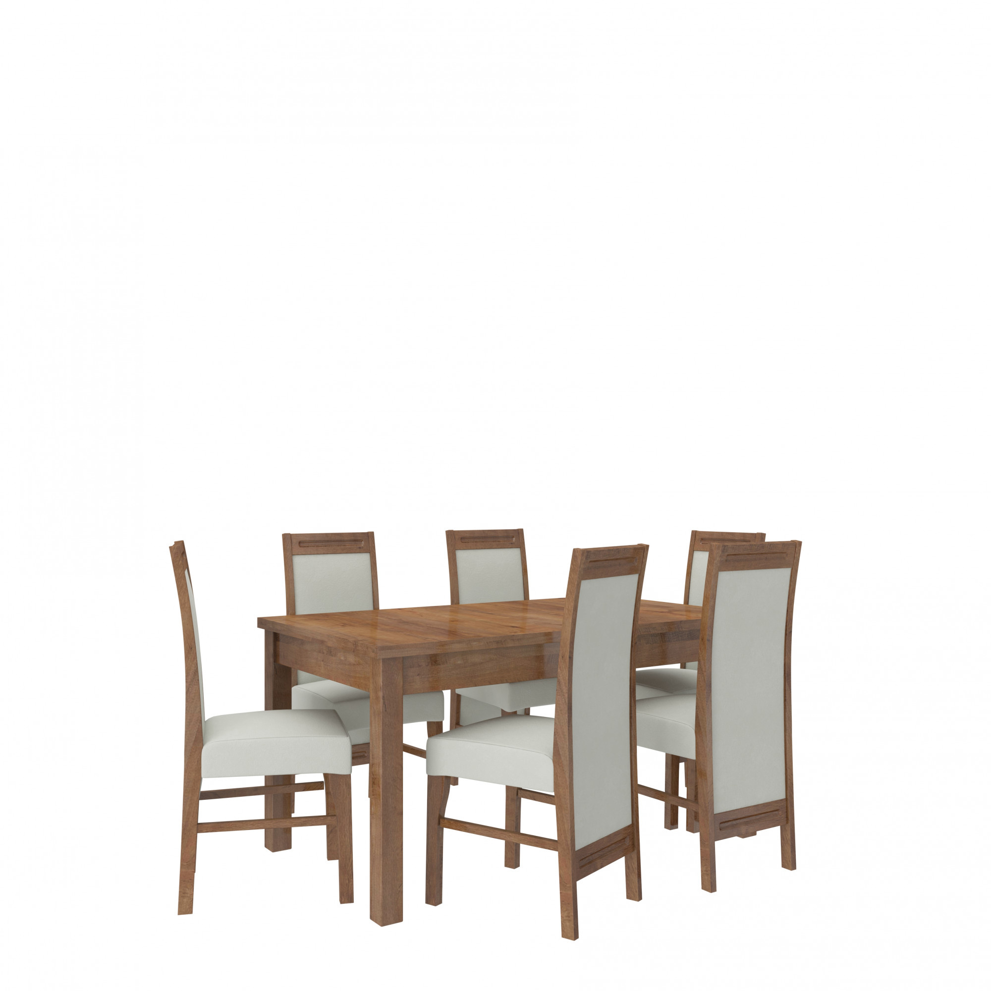 A RODOS 57 összeállítás ideális megoldás egy klasszikus étkező számára. A készlet része egy masszív asztal és hat kényelmes szék. Az egyszerű kialakítású asztal kényelmesen elfér 6 személy számára. A bútor nagyon elegáns és kényelmes. Válassza ki a színt és a szövetkollekciót, és tervezze meg álmai készletét.
