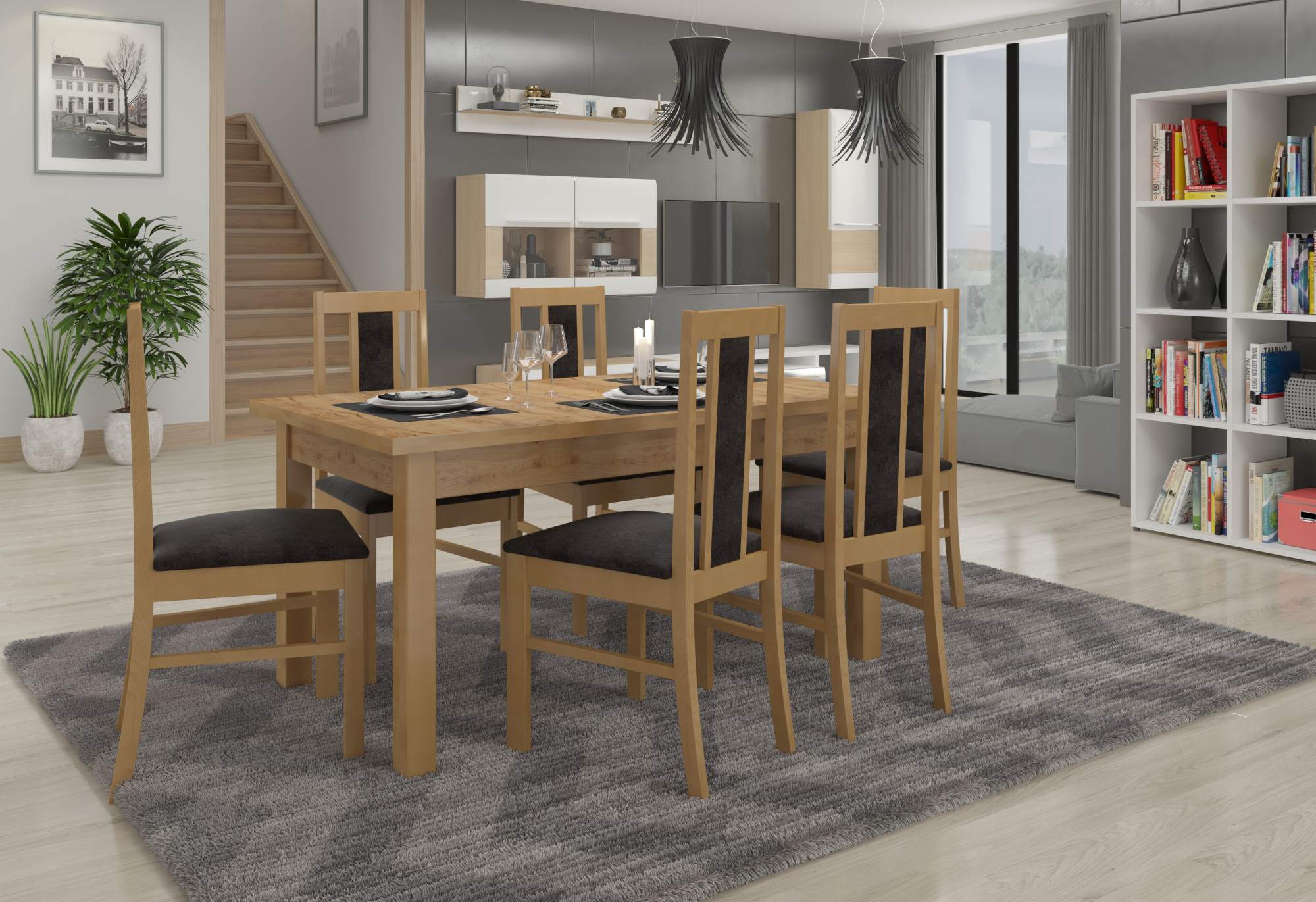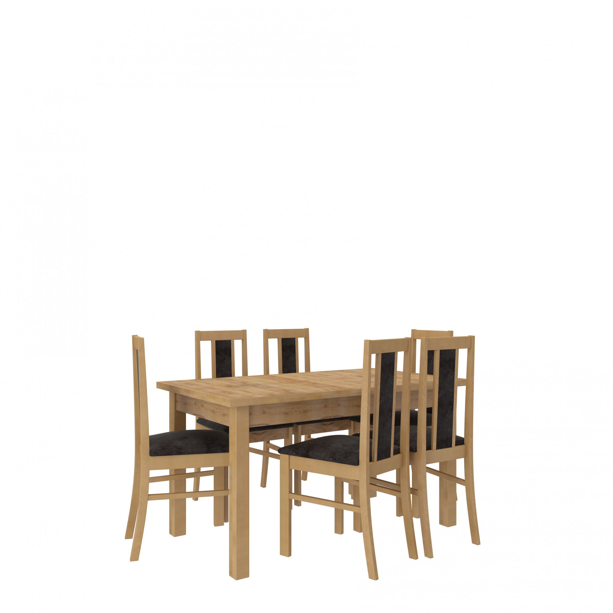 A RODOS 59 összeállítás ideális megoldás egy klasszikus étkező számára. A készlet része egy masszív asztal és hat kényelmes szék. Az egyszerű kialakítású asztal kényelmesen elfér 6 személy számára. A bútor nagyon elegáns és kényelmes. Válassza ki a színt és a szövetkollekciót, és tervezze meg álmai készletét.