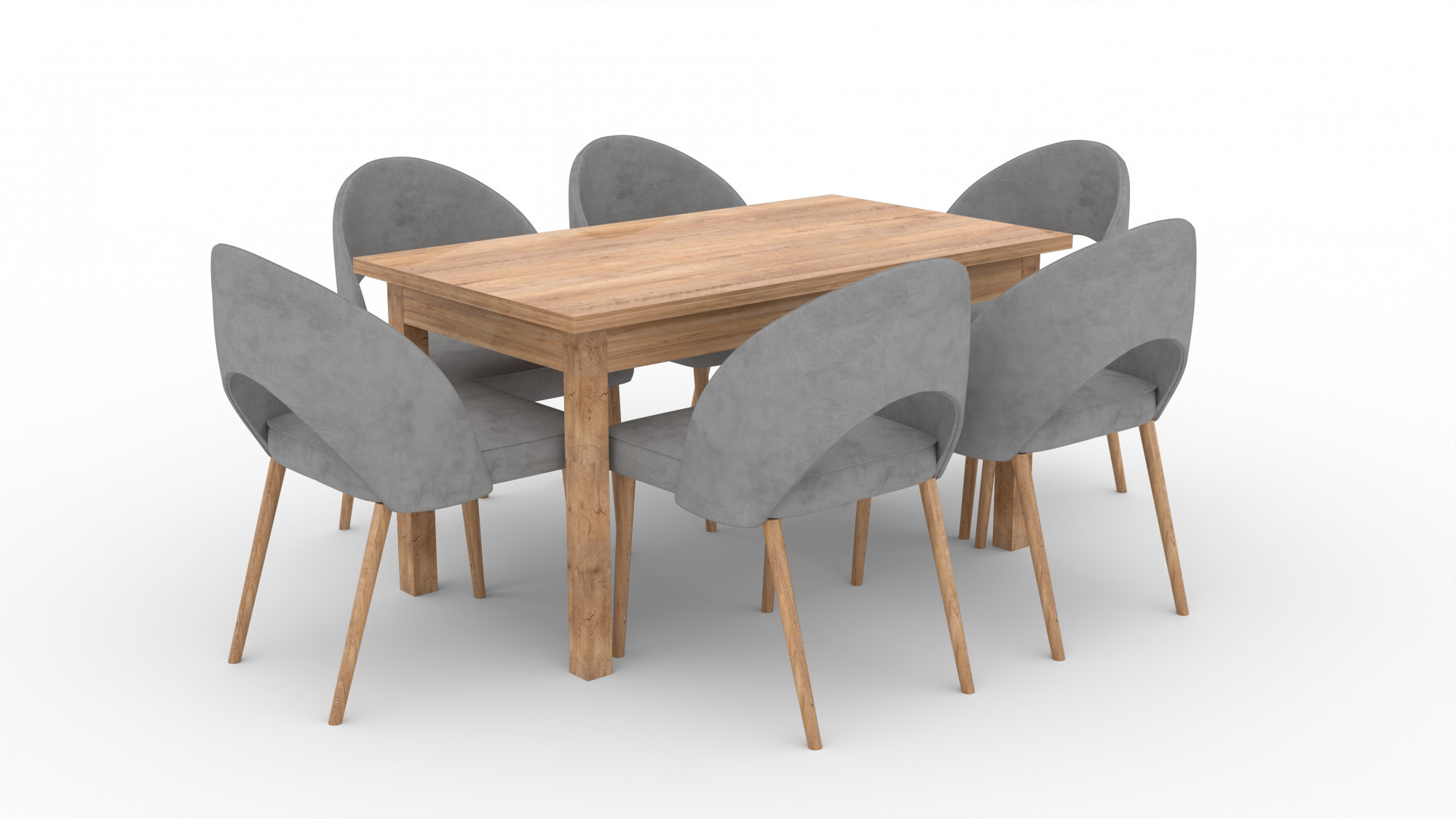 A RODOS 82 készlet ideálisan illik az étkezőjébe. A készlet tartalmaz egy téglalap alakú asztallapot és hat kárpitozott széket. Az asztalt egy betéttel lehet kinyitni, amely a lapot akár 180 cm-re is meghosszabbítja. Stílusos székek stabil lábakkal rendelkeznek, amelyek bükkfából készültek, valamint kárpitozott ülőrésszel és háttámlával, amelyekhez tetszőleges huzatanyag választható a galériában bemutatottak közül. A színek széles választékának köszönhetően a készlet bármilyen belső térbe illik, és kiegészíti a nappalit, a konyhát vagy az étkezőt...