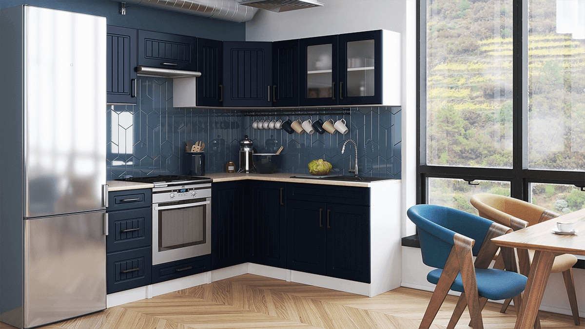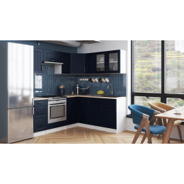 Kuchyňská linka Romana je vyrobená ve venkovském stylu, který se hodí do kuchyně v paneláku i v rodinném domě. Tento styl má jedinečnou schopnost proměnit Vaši kuchyň v útulnou a zároveň funkční místnost, kde bude radost vařit i péct. Rohová kuchyňská linka Romana nabízí dostatek úložného i pracovního prostoru. Kuchyňské skříňky jsou samostatné, takže si je můžete sestavit podle potřeby tak, jak Vám to vyhovuje. Korpusy skříněk jsou vyrobené z lamina 18 mm s hranami ABS a dvířka jsou MDF 16mm. Všechny skříňky jsou dodávány v demontu. Součástí balení je montážní plánek včetně všech potřebných spojovacích prvků. Cena je uvedena za sestavu vyobrazenou na úvodní fotografii BEZ PRACOVNÍ DESKY, s úchytkami, které jsou vyobrazeny v doplňkových fotografiích. Pracovní desku lze dokoupit nad každou skříňku zvlášť podle její šíře. Vyobrazené spotřebiče, dřez, baterie, doplňky a dekorace nejsou v ceně. Kuchyň bude dodaná s bílými korpusy a dvířky v dekóru tmavě modrá. Zobrazení barev na fotografii se může od skutečnosti lišit.