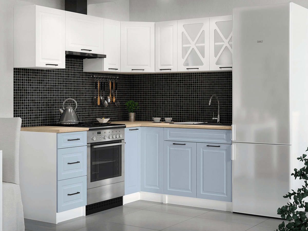 Rohová kuchyňská linka Astra bílá/denim MAT