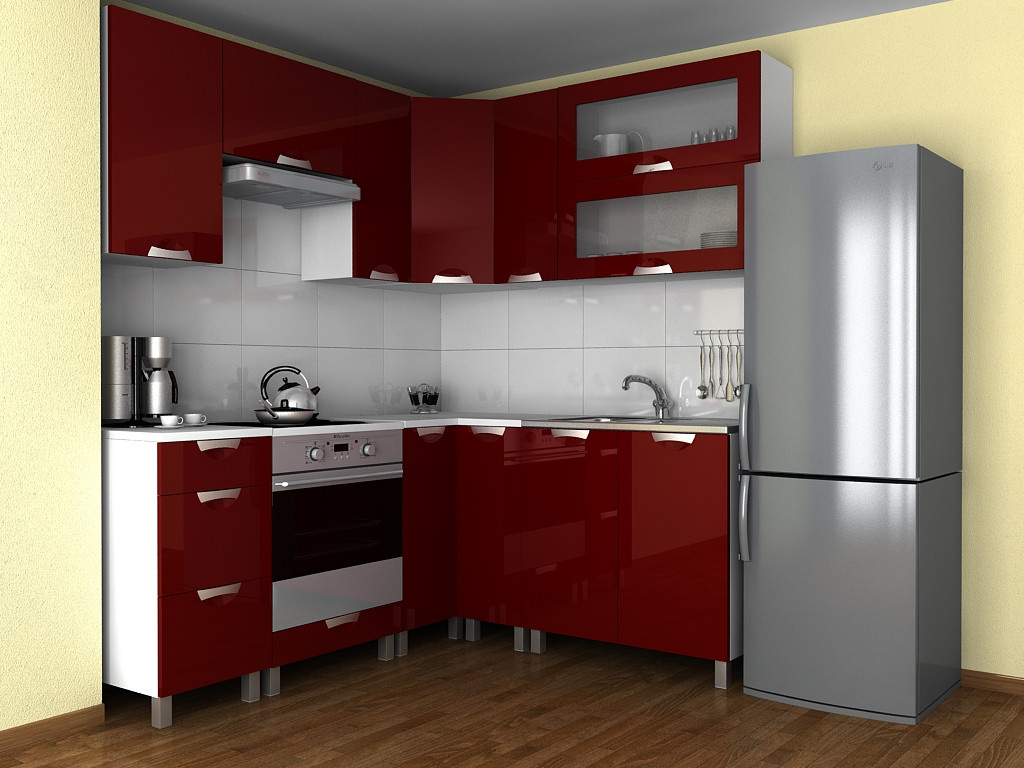 Rohová kuchyňská linka Grepolis RLG bordo lesk