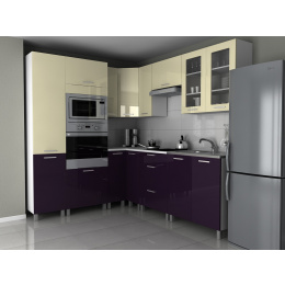 Rohová kuchyňská linka Milenium KRF vanilka/fialový lesk
