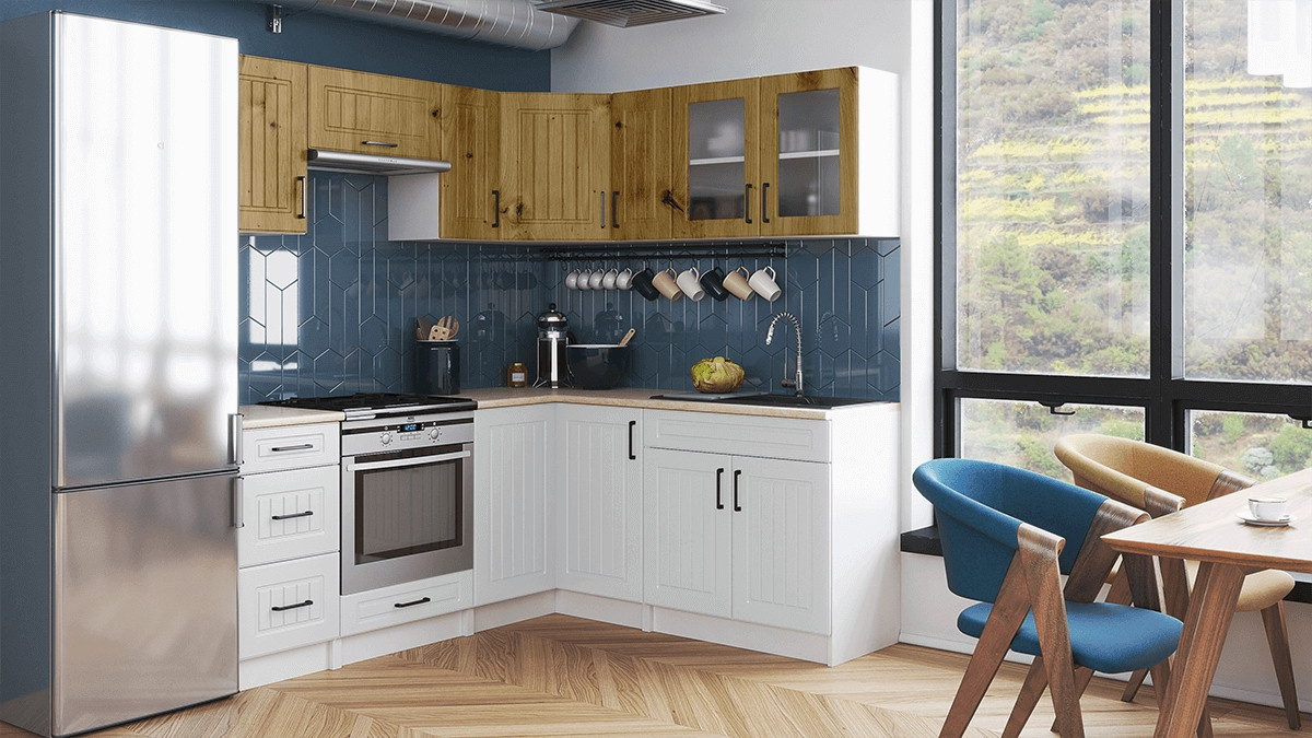 Kuchyňská linka Romana je vyrobená ve venkovském stylu, který se hodí do kuchyně v paneláku i v rodinném domě. Tento styl má jedinečnou schopnost proměnit Vaši kuchyň v útulnou a zároveň funkční místnost, kde bude radost vařit i péct. Rohová kuchyňská linka Romana nabízí dostatek úložného i pracovního prostoru. Kuchyňské skříňky jsou samostatné, takže si je můžete sestavit podle potřeby tak, jak Vám to vyhovuje. Korpusy skříněk jsou vyrobené z lamina 18 mm s hranami ABS a dvířka jsou MDF 16mm. Všechny skříňky jsou dodávány v demontu. Součástí balení je montážní plánek včetně všech potřebných spojovacích prvků. Cena je uvedena za sestavu vyobrazenou na úvodní fotografii BEZ PRACOVNÍ DESKY, s úchytkami, které jsou vyobrazeny v doplňkových fotografiích. Pracovní desku lze dokoupit nad každou skříňku zvlášť podle její šíře. Vyobrazené spotřebiče, dřez, baterie, doplňky a dekorace nejsou v ceně. Kuchyň bude dodaná s bílými korpusy a dvířky v dekóru artisan a bílá. Zobrazení barev na fotografii se může od skutečnosti lišit.