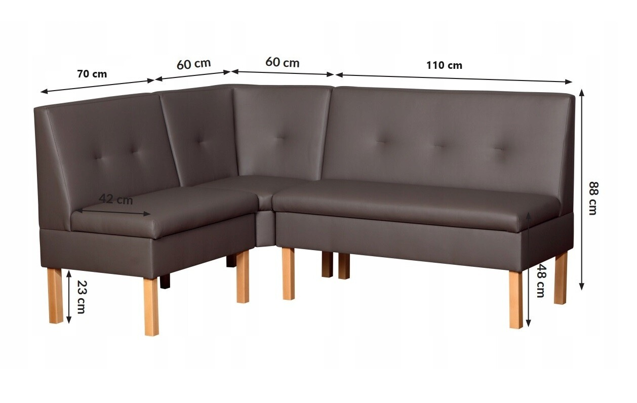 Lavice je vyrobena z vysoce kvalitních tkanin a dřeva, což zaručuje její dlouhou životnost a odolnost vůči opotřebení. Díky svému rozměru šířky 170 cm, hloubky 130 cm a maximální výšky 88 cm, poskytuje dostatek prostoru pro pohodlné sezení. Minimální výška sedu je 48 cm, což umožňuje pohodlné a ergonomické sezení.