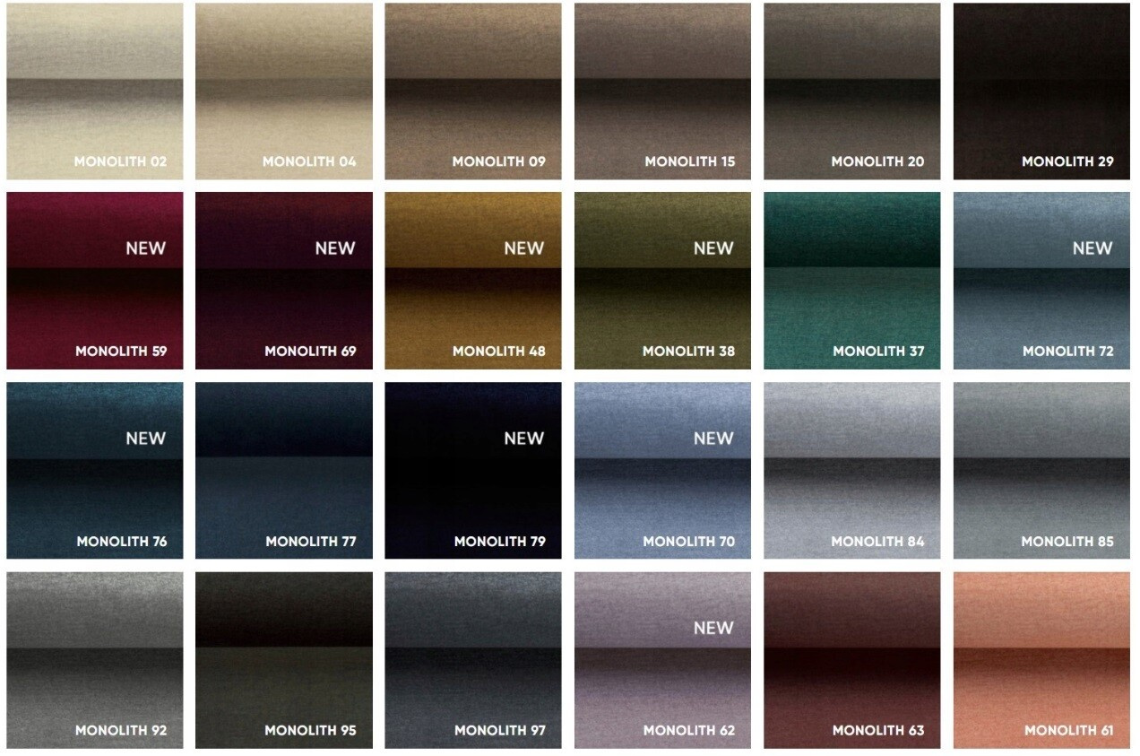 Tkanina Monolith je pevná, ale na dotek příjemná potahová látka. Je obohacena speciální hybridní vrstvou, která zabraňuje pronikání kapalin do struktury tkaniny. Tato příjemná a odolná tkanina se skvěle hodí do každé domácnosti i veřejných prostor. Je to také skvělá tkanina pro děti a materiál odolný vůči domácím zvířatům.