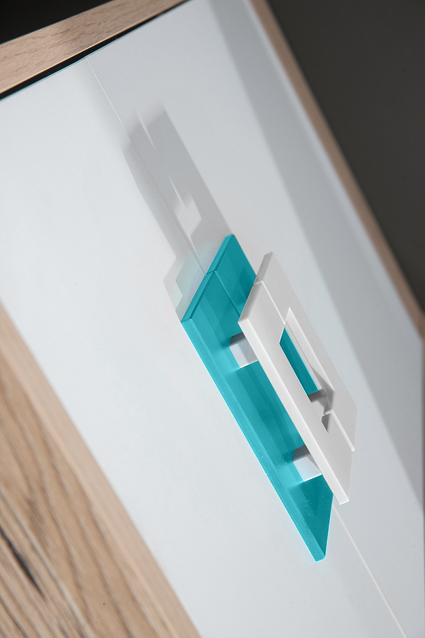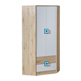 Rohová šatní skříň NICO 02, Světlý Dub/Bílá/Tyrkys