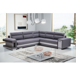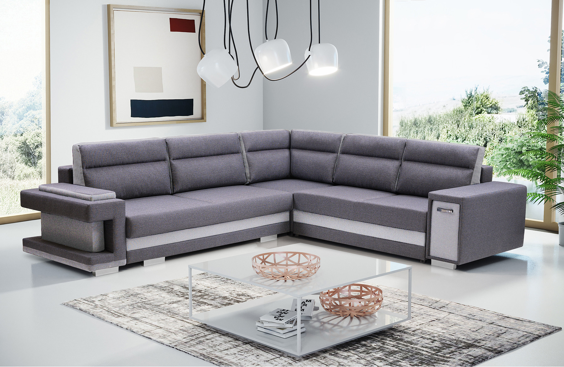 Rozkládací pohovka A2 ve tvaru písmene L je k dispozici v pravém i levém provedení, takže si ji každý bude moci přizpůsobit tvaru a rozměrům zařízeného interiéru. Model A2 s funkcí spaní je vybaven automatickou jednotkou MOS pro snadné rozložení; pod sedadlem je k dispozici prostorný úložný prostor na lůžkoviny. Rohová pohovka stojí na dřevěném rámu a chromovaných nohách, které zajišťují odolnost a stabilitu nábytku. Volně stojící kus nábytku A2 je na sedáku a opěráku vyplněn vlnitou pružinou a čalounickou pěnou T-30, které zajišťují odpovídající pružnost. Součástí rohové sedací soupravy jsou polštáře, které lze umístit na opěradlo - jsou ozdobně prošité a dodávají jí moderní vzhled. Nábytek je čalouněný látkou, jejíž barvy si lze vybrat podle individuálních preferencí ze vzorníku barev. Rohovou sedací soupravu s bočnicemi lze umístit jak do rohu místnosti, tak do jejího středu - zadní část nábytku je navíc esteticky čalouněná. Model A2 má dva vestavěné praktické úložné prostory - jeden je k dispozici ve formě výsuvné zásuvky, druhý je umístěn v jedné z područek. Rohová sedačka pro více osob nejen podtrhne jedinečný charakter zařízeného interiéru, ale také poskytne pohodlí a komfort i při mnohahodinovém odpočinku po náročném dni.