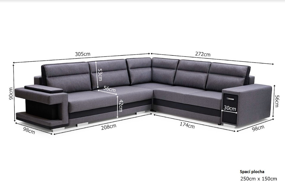 - rohová pohovka je k dispozici v pravém nebo levém provedení