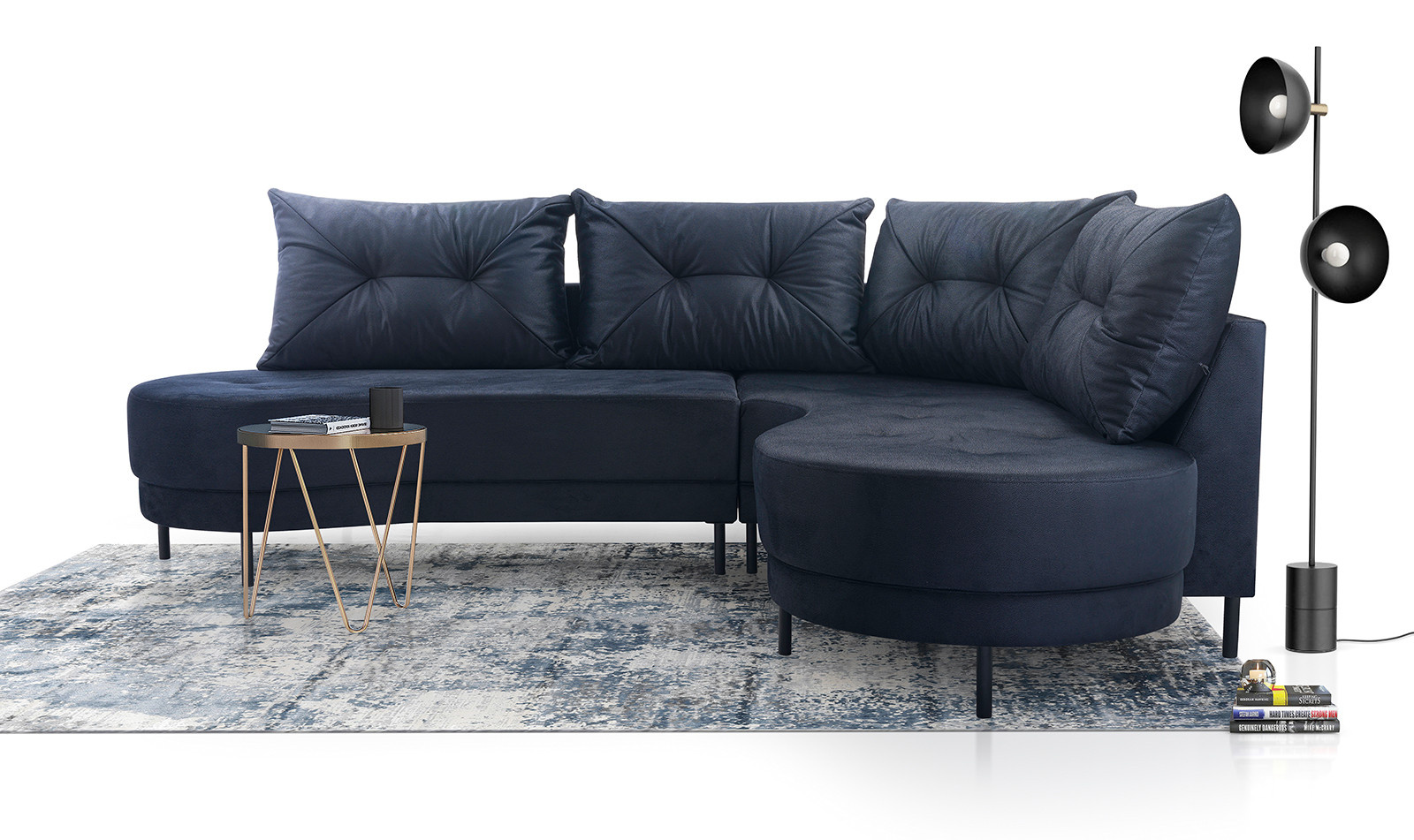 Model ABIBI eohová sedací souprava má rám vyrobený ze dřeva, dřevotřísky a laminované desky. V sedáku a opěráku byly použity vlnité pružiny .Černé plastové nožky Výška 13 cm Polštáře s aretací jsou součástí rohové soupravy , která je vhodní i k umístění do prostoru. Výrobek je vyroben na individuální objednávku zákazníka. Loftová rohovka je nábytek ideální do obývacího pokoje, ale i do elegantní kanceláře nebo čekárny. Díky velkému posezení ve velmi zajímavém tvaru je nepostradatelným místem k odpočinku nebo čekání ve velmi příjemných podmínkách. Neobvyklý půlkruhový tvar rohové pohovky loft umožní její používání několika osobami najednou. Charakter loftu dodávají vysoké nohy, díky nimž se nábytek mírně zvedá a získává ladný tvar. Opěradlo je vyplněno polštáři a sedák je obohacen prošíváním, aby bylo používání rohové pohovky ještě příjemnější! Konečný vzhled je na vás! Můžete si vybrat látku, barvu i stranu rohové soupravy pro pohodlný odpočinek nebo zdřímnutí po práci.