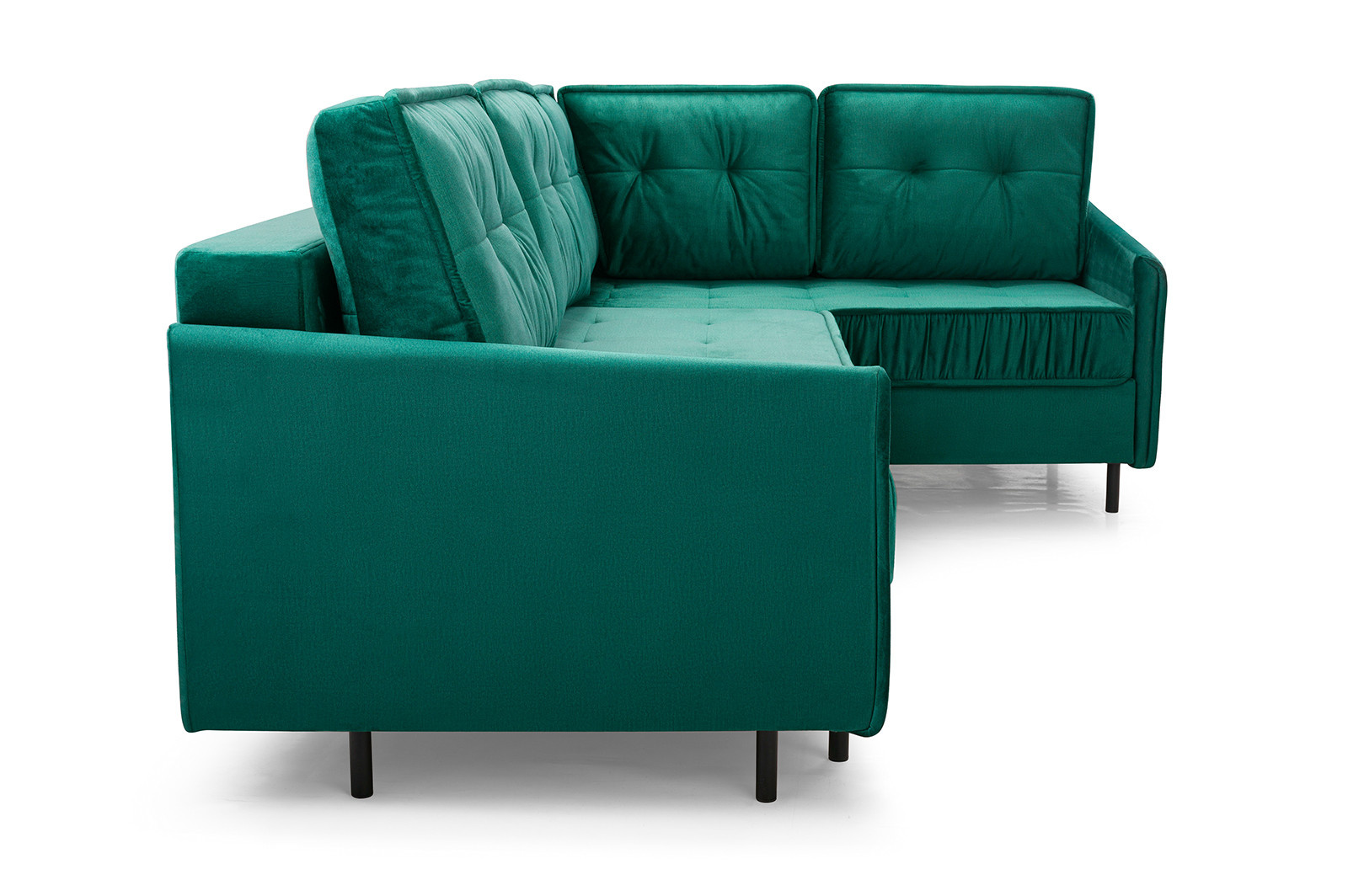 Moderní rohová sedací souprava Alaskan je design, který osloví i ty nejnáročnější uživatele, kteří ocení pohodlí při relaxaci a mimořádnou estetiku tohoto kusu nábytku. Tato tvarovaná rohová sedací souprava s pěknými tvary zaujme na první pohled minimalistickými černými nožkami, prošitím sedáku a ozdobnými polštáři na opěradle rohové sedací soupravy. Volně stojící kus nábytku s čalouněným opěradlem lze umístit nejen ke stěně, ale také do centrální části pokoje. Model Alaskan se vyznačuje rustikálním tvarem, díky němuž může sloužit jako místo pro odpočinek . Rohová sedací souprava ve tvaru písmene L je k dispozici v pravostranném nebo levostranném provedení, takže každý může nábytek přizpůsobit uspořádání místnosti a individuálním preferencím.