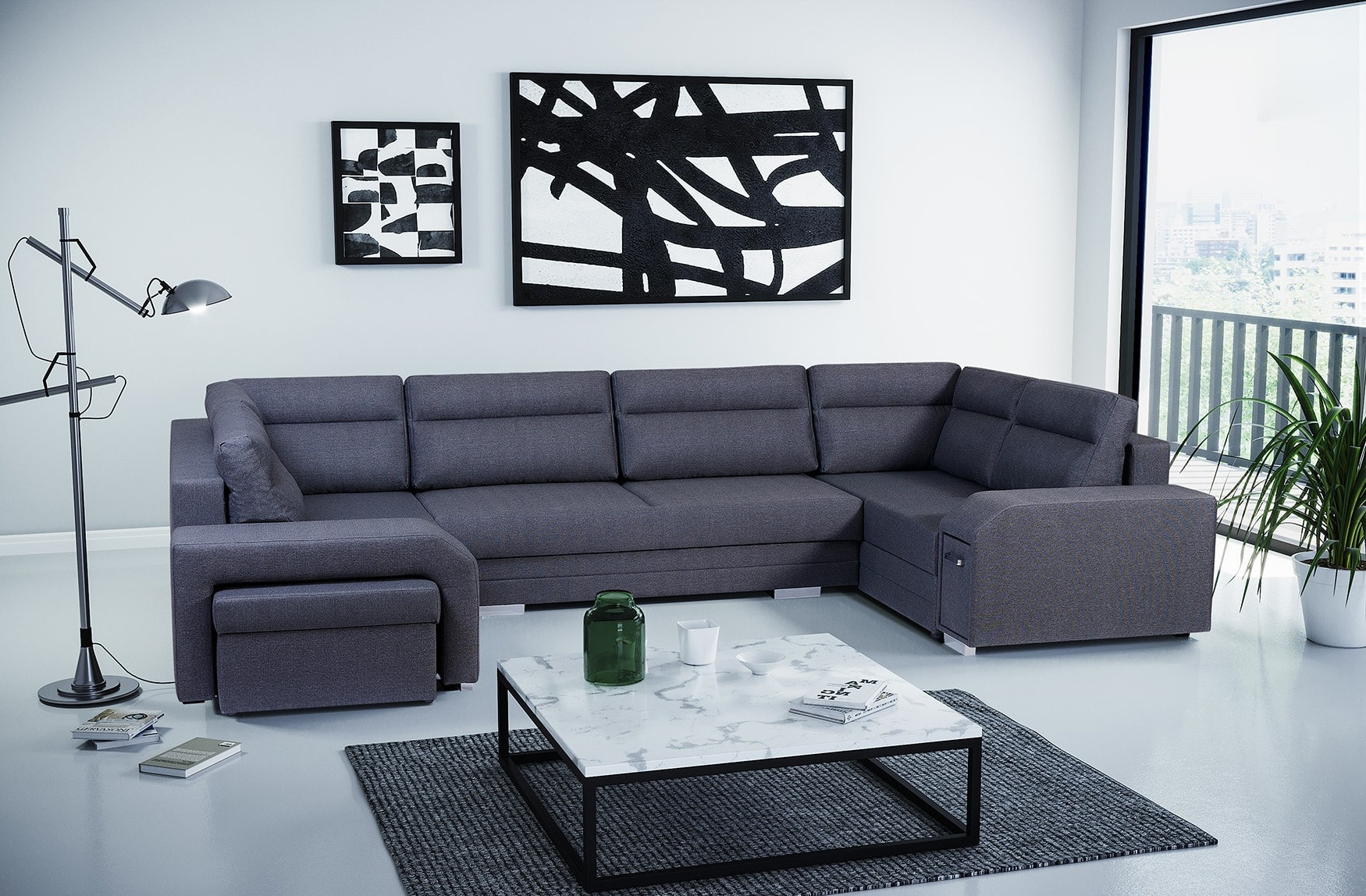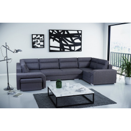 Rohová sedací souprava ALVARES U do obývacího pokoje je navíc vybavena automatickým rozkládáním - rohová sedací souprava má funkci spaní, díky které se můžete spolehnout na bezpečný a pohodlný spánek. Rám nábytku je vyroben ze dřeva a poté je opatřen chromovanými nohami. K rohové sedací soupravě patří taburet - v nábytku je pro něj zabudováno speciální místo a praktický úložný prostor v podobě výsuvné zásuvky na drobné doplňky. Součástí sady jsou také polštáře umístěné na opěradle. Spací plocha modelu ALVARES U je vyplněna čalounickou pěnou T-30 a vlnitými pružinami. Kolem prezentované rohové sedací soupravy jistě nikdo neprojde lhostejně - nábytek je praktický pro každodenní použití a zároveň poskytuje pohodlí i při mnohahodinovém odpočinku.