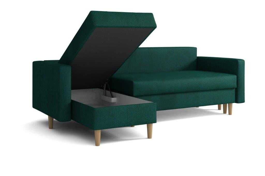 Sedací souprava Anabel je krásným designovým RETRO kouskem, který výborně zapadne do moderního i klasického interiéru. Retro design podtrhují dřevěné nohy a vtahy na opěrných polštářích. Její velkou předností je pohodlí, praktičnost a univerzální použití. Tzn. že si ji můžete podle potřeby sestavit jako levou nebo pravou, což je výhoda při zařizování obývacího pokoje. Nemusíte přemýšlet do jakého rohu postavíte sedací soupravu, jednoduše ji podle potřeby přizpůsobíte. Sedací souprava je rozkládací a může tak sloužit k občasnému přespání Vaší návštěvy. Samozřejmostí je i praktický úložný prostor, který je v obou částech sedačky a můžete ho využít např. na lůžkoviny. Sedací souprava je potažena látkou a nabízíme v několika oblíbených barvách. Výplň sedáků tvoří kombinace pružin s kvalitní PUR pěnou, což zajišťuje velmi pohodlné sezení. Sedací souprava je vhodná i do menších pokojů. Vyobrazené doplňky a dekorace nejsou v ceně. Zobrazení barev produktu na fotograii se může nepatrně lišit od skutečnosti.
