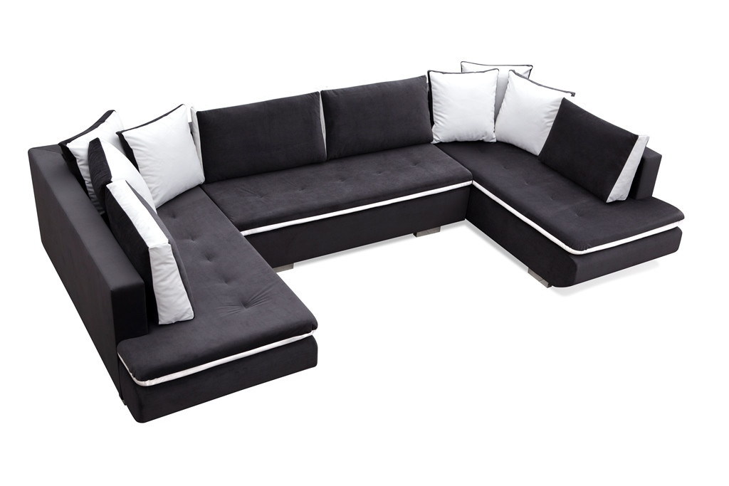 Rohová sedací souprava ARGENT U je univerzální rohová sedací souprava, kterou lze díky čalouněnému opěradlu umístit jak ke stěně obývacího pokoje, tak do jeho střední části. Moderní rohová pohovka ve tvaru U je rozkládací kus nábytku, který lze rychle přeměnit z obývacího na spací. Rohová sedačka pro více osob je vybavena automatickou rozkládací pomůckou, takže ji zvládnou starší lidé i děti. Dřevěný rám je doplněn vlnitými pružinami na spací ploše, sedáku a opěráku a čalounickou pěnou T-30. Model ARGENT U stojí na stylových chromovaných nohách, které dotvářejí celé uspořádání. Moderní rohová pohovka je čalouněná kvalitní látkou, která je k dispozici v široké škále barev. Čalouněná rohová sedací souprava s polštáři je vybavena prostorným kontejnerem na lůžkoviny, do kterého se snadno vejdou polštáře, přikrývky a peřiny, tedy všechny prvky potřebné k přípravě lůžka na spaní. Moderní rohová pohovka ARGENT do U s bočnicemi zaujme dekorativním prošíváním umístěným na sedáku a kontrastní barevnou vložkou.