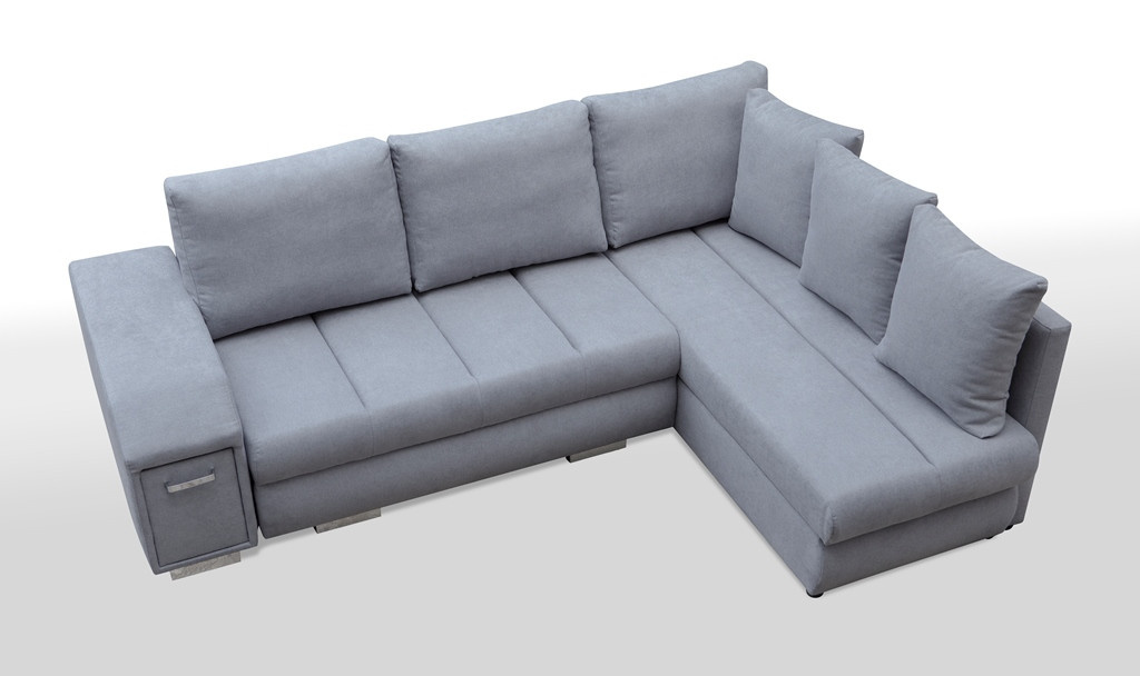 Rozkládací rohová pohovka ARNI s bočnicemi je k dispozici v pravostranném nebo levostranném provedení podle vašeho výběru. Rohová sedací souprava ve tvaru písmene L pro více osob najde své ideální místo v relaxačním a zároveň reprezentativním prostoru, například v obývacím pokoji - bude to kus nábytku zaručující pohodlí i při mnohahodinovém sezení. Model ARNI je vybaven spací funkcí, která nám umožní pohodlně a bezpečně ubytovat naše hosty. Nábytek je navržen s automatickým rozkládáním. Rohová sedací souprava je vyrobena na dřevěném rámu a čalouněna látkou, která je k dispozici v široké škále barev, z nichž si můžete vybrat. Stylová rohová sedací souprava s čalouněnými zády má dva prostorné úložné prostory na lůžkoviny a výsuvnou zásuvku se dvěma přihrádkami umístěnou v boční části, kam si můžete uložit věci, které potřebujete mít při odpočinku po ruce.