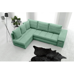 Rozkládací rohová pohovka ARNI s bočnicemi je k dispozici v pravostranném nebo levostranném provedení podle vašeho výběru. Rohová sedací souprava ve tvaru písmene L pro více osob najde své ideální místo v relaxačním a zároveň reprezentativním prostoru, například v obývacím pokoji - bude to kus nábytku zaručující pohodlí i při mnohahodinovém sezení. Model ARNI je vybaven spací funkcí, která nám umožní pohodlně a bezpečně ubytovat naše hosty. Nábytek je navržen s automatickým rozkládáním. Rohová sedací souprava je vyrobena na dřevěném rámu a čalouněna látkou, která je k dispozici v široké škále barev, z nichž si můžete vybrat. Stylová rohová sedací souprava s čalouněnými zády má dva prostorné úložné prostory na lůžkoviny a výsuvnou zásuvku se dvěma přihrádkami umístěnou v boční části, kam si můžete uložit věci, které potřebujete mít při odpočinku po ruce.