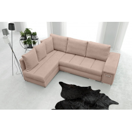 Rozkládací rohová pohovka ARNI s bočnicemi je k dispozici v pravostranném nebo levostranném provedení podle vašeho výběru. Rohová sedací souprava ve tvaru písmene L pro více osob najde své ideální místo v relaxačním a zároveň reprezentativním prostoru, například v obývacím pokoji - bude to kus nábytku zaručující pohodlí i při mnohahodinovém sezení. Model ARNI je vybaven spací funkcí, která nám umožní pohodlně a bezpečně ubytovat naše hosty. Nábytek je navržen s automatickým rozkládáním. Rohová sedací souprava je vyrobena na dřevěném rámu a čalouněna látkou, která je k dispozici v široké škále barev, z nichž si můžete vybrat. Stylová rohová sedací souprava s čalouněnými zády má dva prostorné úložné prostory na lůžkoviny a výsuvnou zásuvku se dvěma přihrádkami umístěnou v boční části, kam si můžete uložit věci, které potřebujete mít při odpočinku po ruce.