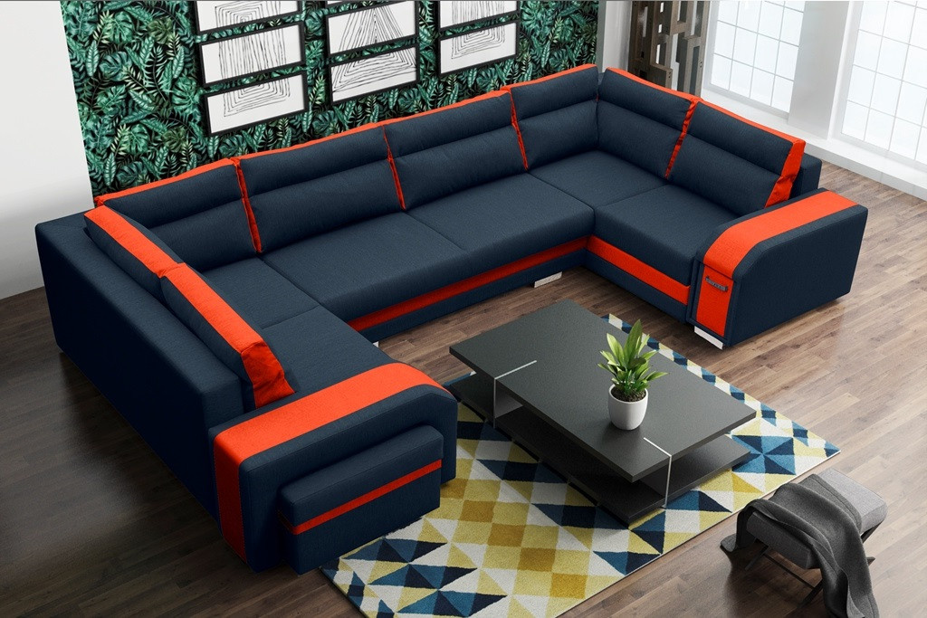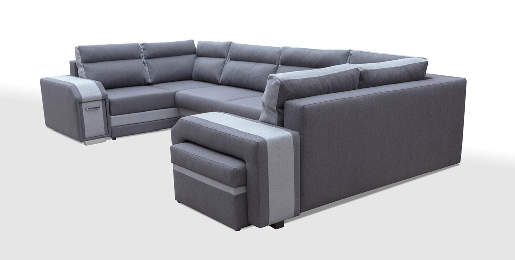 Rohová pohovka ASSAN U ve tvaru U je rozkládací jednotka s funkcí spaní, která je vybavena automatickým asistenčním systémem rozkládání. Sedací prvek pro více osob má kromě zabudovaného praktického úložného prostoru také zabudovaný prostor pro taburet, který je k dispozici v prezentované soupravě. Taburet ASSAN poslouží nejen jako další sedátko, ale bude se hodit i jako podnožka při odpočinku na rohové sedačce. Díky čalouněným zádům lze volně stojící rohovou pohovku umístit nejen ke stěně, ale také do centrální části obývacího pokoje nebo obývacího pokoje. Přes den bude rohová pohovka místem pro setkání s rodinou a přáteli, ale i pro odpočinek u televize nebo s knihou v ruce, zatímco v noci se může proměnit v pohodlné lůžko. Souprava se dodává s taburetem a rohovou sedací soupravou a s polštáři, které jsou na recenzní fotografii umístěny na mírně profilovaném opěradle. Nábytek je vybaven třemi úložnými prostory třeba na lůžkoviny, které udrží všechny polštáře, přikrývky a peřiny na svém místě. Na celé ploše pro spaní byla použita čalounická pěna T-30 a vlnitá pružina. Chromované nožky jsou zajímavým doplněním stylového designu.