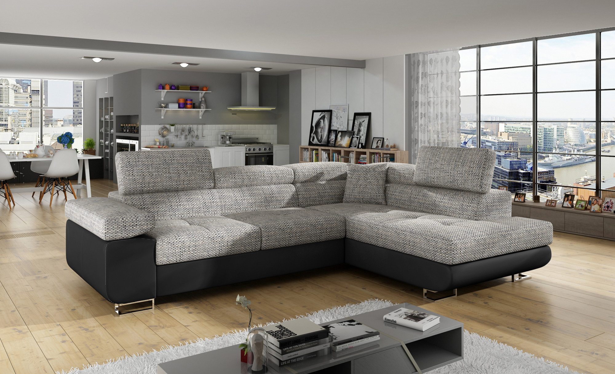 - možnost ustavení sedací soupravy do prostoru - záda sedací soupravy jsou očalouněny stejnou potahovou látkou