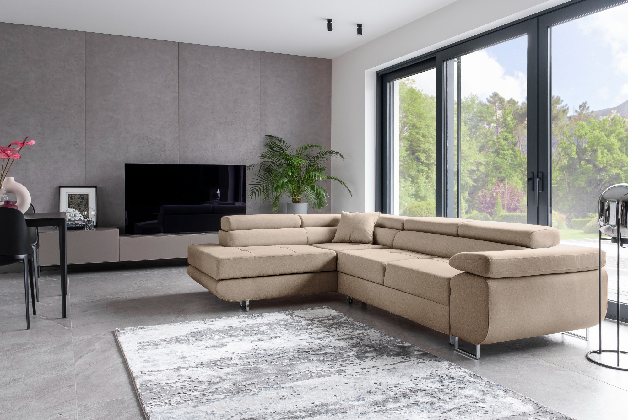 - možnost ustavení sedací soupravy do prostoru - záda sedací soupravy jsou očalouněny stejnou potahovou látkou