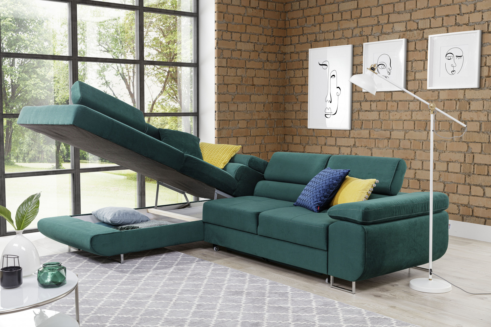 - možnost ustavení sedací soupravy do prostoru - záda sedací soupravy jsou očalouněny stejnou potahovou látkou